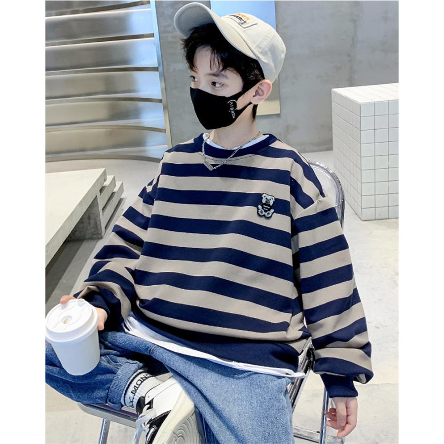 子供ジャージ ストライプ柄 トレーナー パーカー 男の子 長袖トップス スウェット 子ども服 キッズ ゆったり 通学 運動着 春秋 Tシャツ