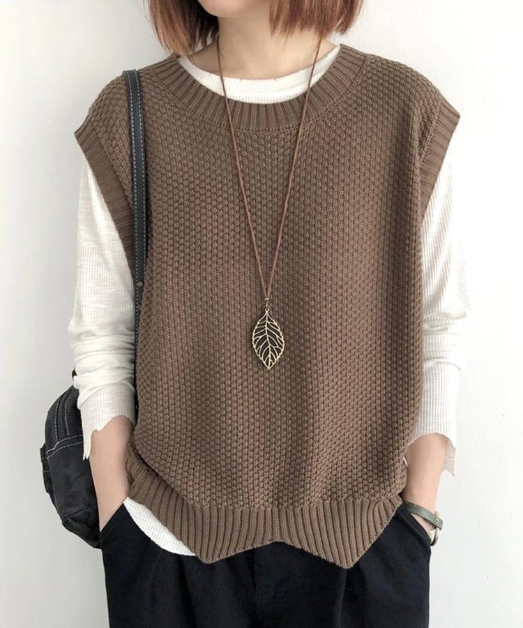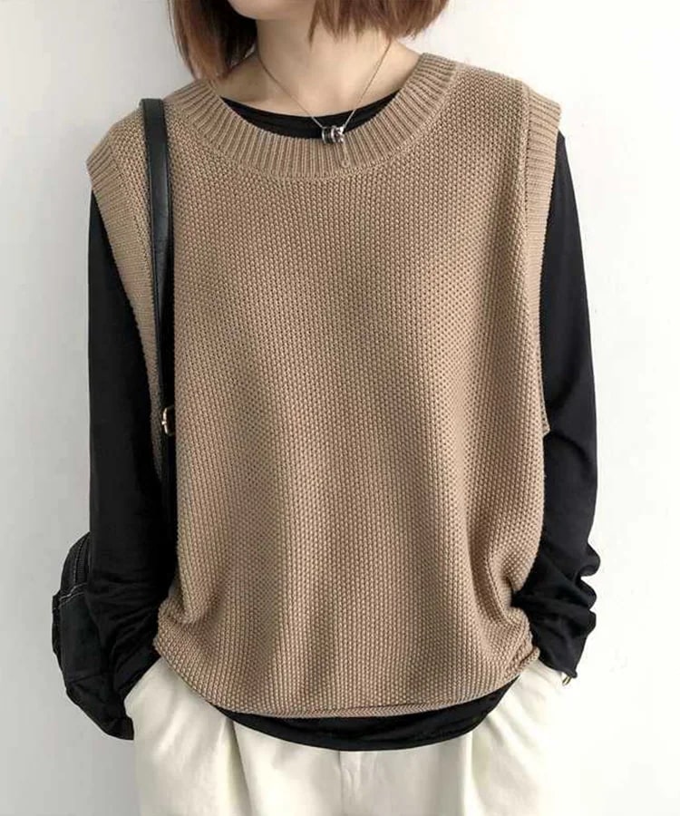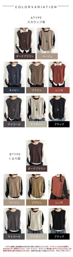 ニット ベスト レディース 秋 冬 ゆったり トップス 2TYPE 裾スカラップ 着回し 裾くるり ノースリーブ おしゃれ ペプラム カジュアル 重ね着 薄手 オーバーサイズ 春