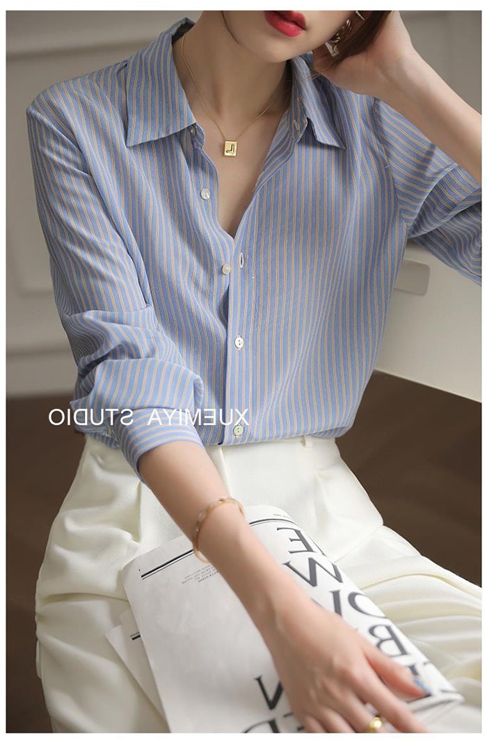 シャツ レディース ストライプ シフォン ブラウス 長袖 シャツ とろみブラウス スーツ インナー とろみシャツ オフィス ビジネス 事務服 制服 リクルート 着痩せ 着回し 通勤 OL おしゃれ ゆ