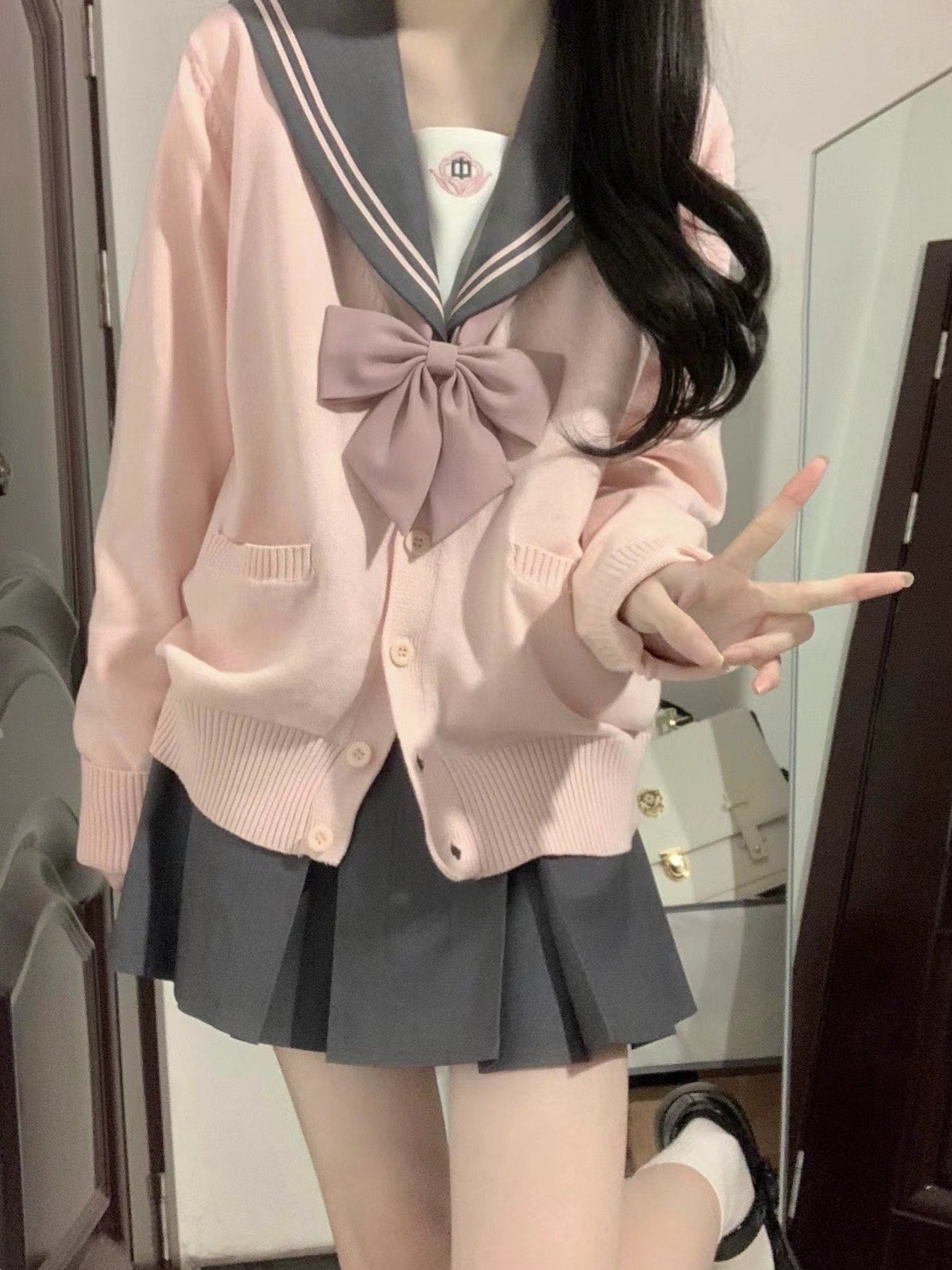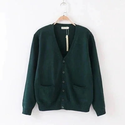 ふんわり カーディガン ニットセーター秋アウター 制服 スクール制服カーディガン薄手夏ピンクコットンかわいいケーブル編み お揃い学生 無地 ゆったり Vネック ニット 綿 スクール