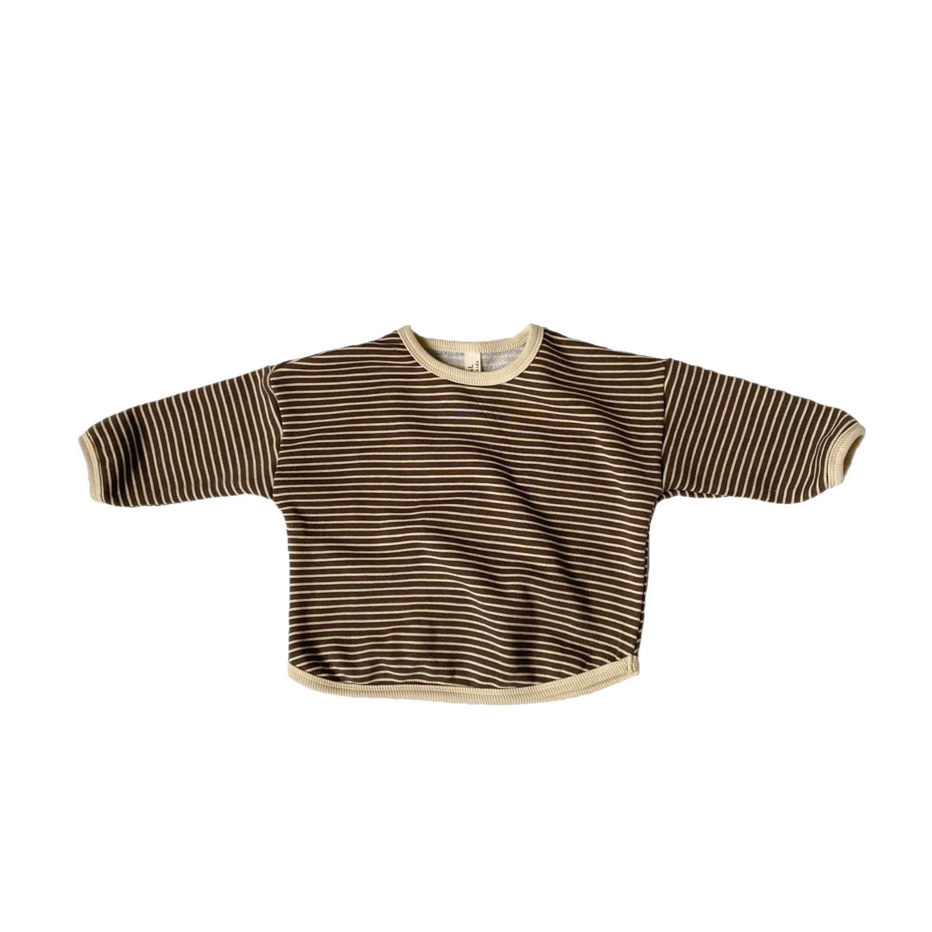 韓国版春の新作子供縞ロンT男女子供ゆったり縞長袖プルオーバー Tシャツ