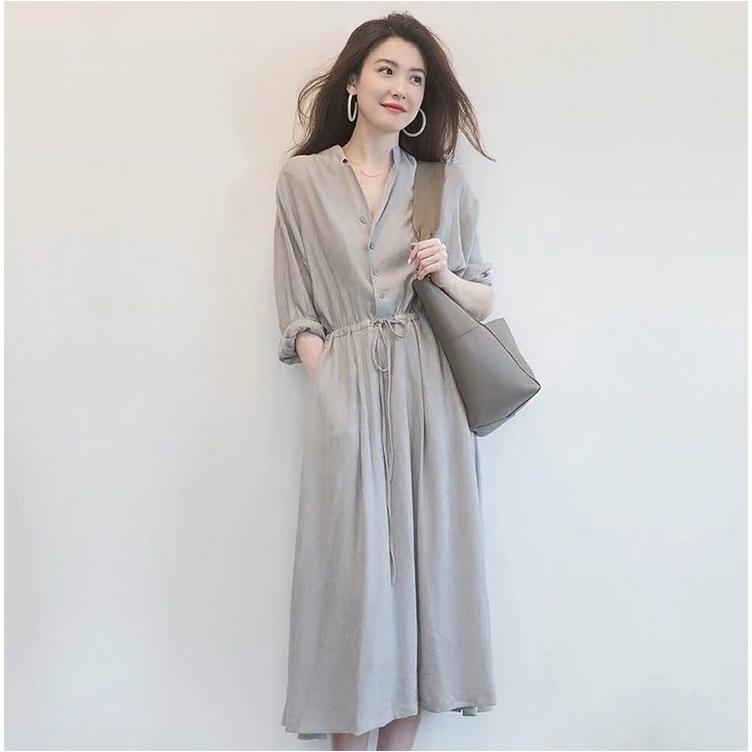シャツワンピース レディース ロングワンピース 長袖 秋 春 大きいサイズ マキシ丈 体型カバー ゆったり結婚式 ドレス オシャレ 上品 着痩せ