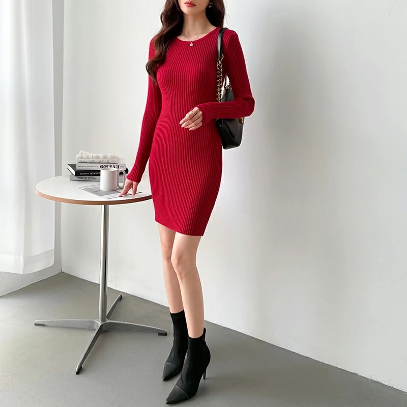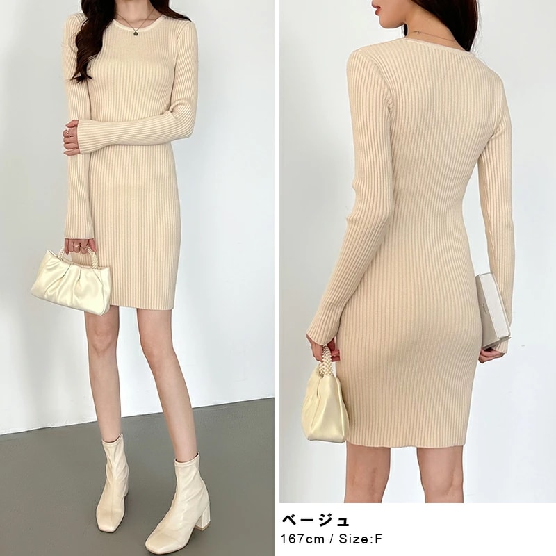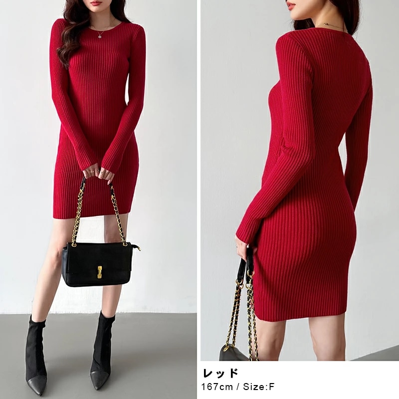 タイトワンピース ニットワンピース ミニワンピ セクシー ミニ ワンピース ニット タイト 長袖 レディース リブニット ワンピ ミニワンピース リブニットワンピース