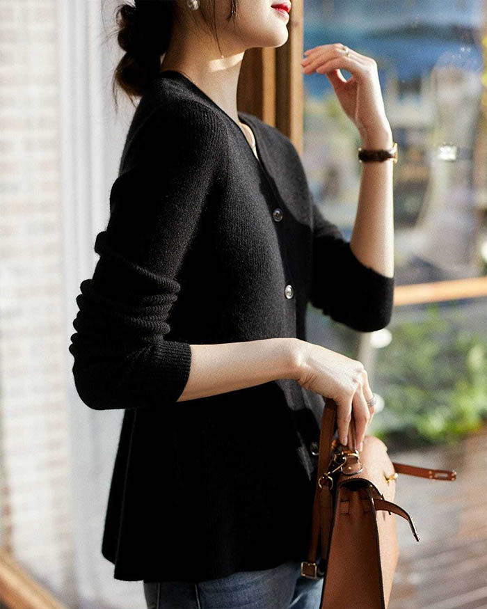 カーディガン レディース 秋 冬 ボタンあり フレア セーター 長袖 ゆったり フェミニン 着回し シンプル カジュアル 大きいサイズ 体型カバー 柔らかい お洒落 女性らしい 通勤 普段着