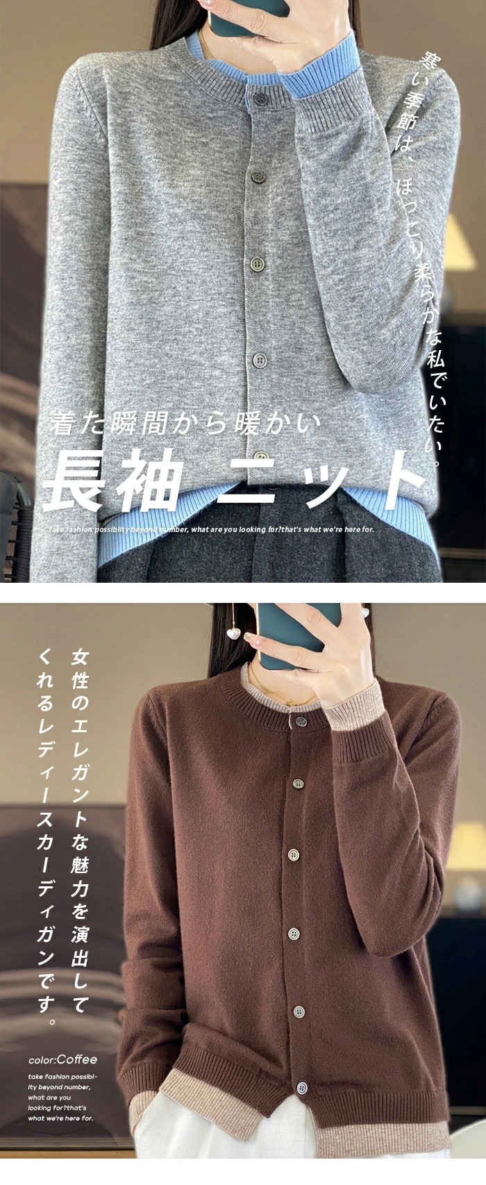 カーディガン 長袖 ニット レイヤード レディース ニットカーディガン 切り替え ボレロ クールネック トップス 大きいサイズ フライスカーデ ショート丈 レイヤードニット 肩掛け アウター 2枚重ね