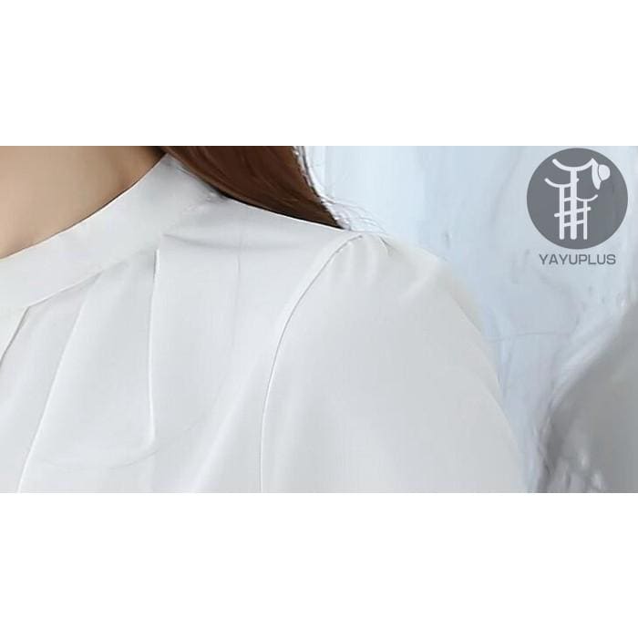シアースリーブ ドッキングシャツ ボウタイシャツブラウス