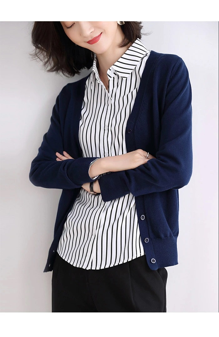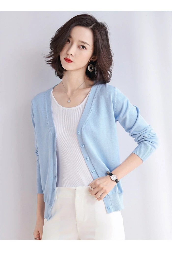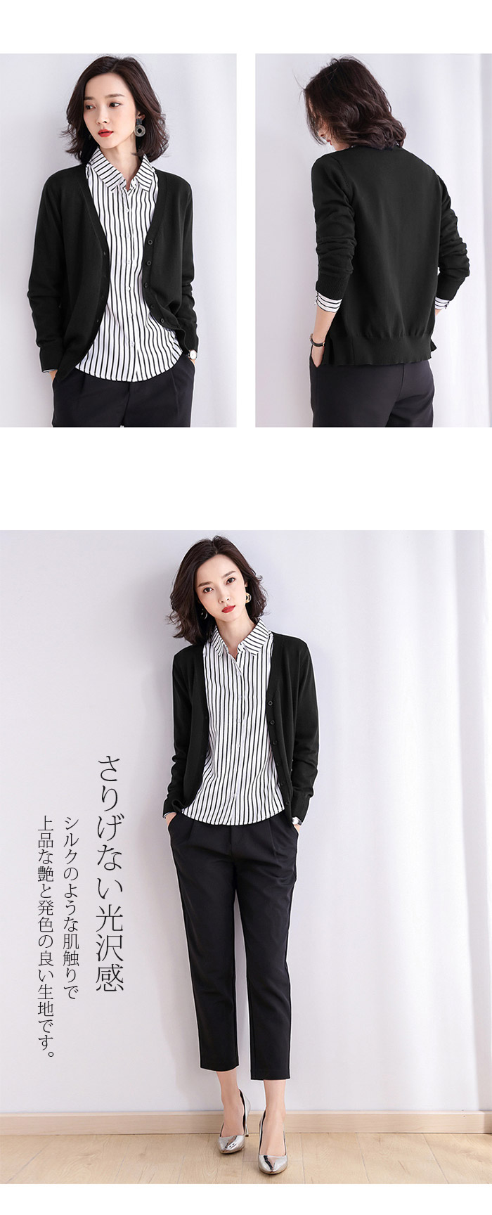 カーディガン 長袖 ニット コットン レディース Vネック ニットカーディガン リブ編み ショート丈 トップス 体型カバー フライスカーディガン 肩掛け アウター カットソー 羽織り シンプル 敏感肌