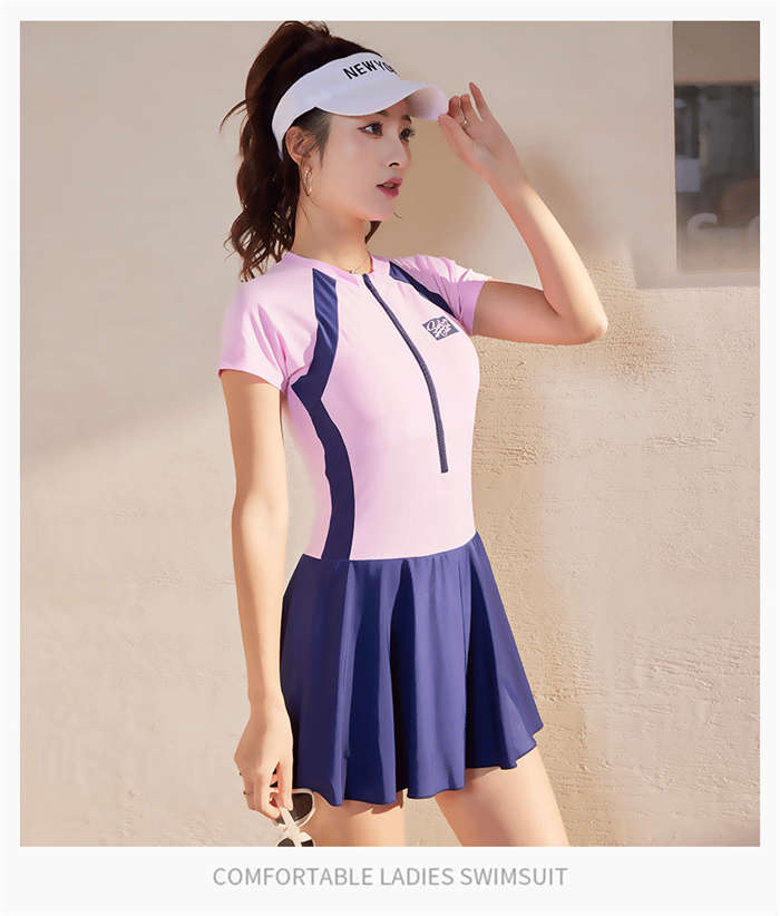 水着 レディース ワンピース 体型カバー 大きいサイズ かわいい おしゃれ 無地 フィットネス 半袖 ハイウエスト 露出控えめ スポーツウェア スカート オールインワン ママ水着 オトナ女子 フィット