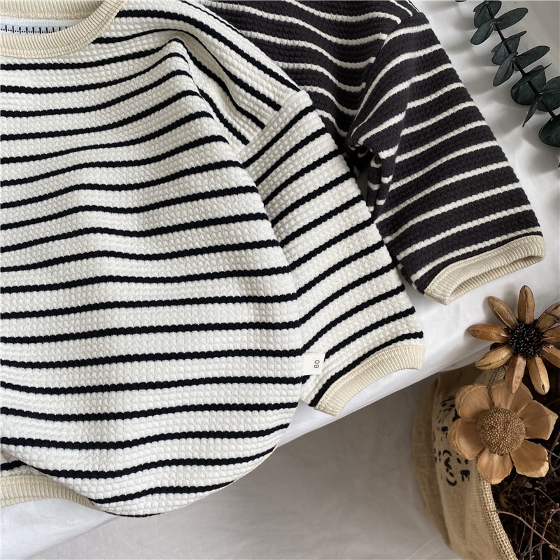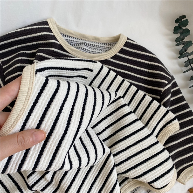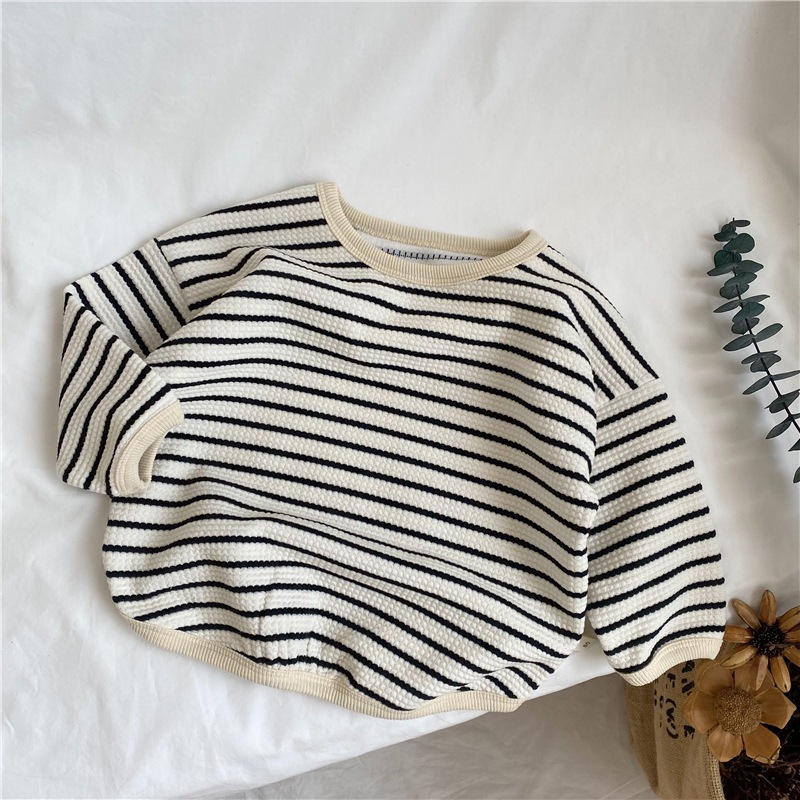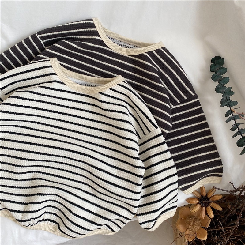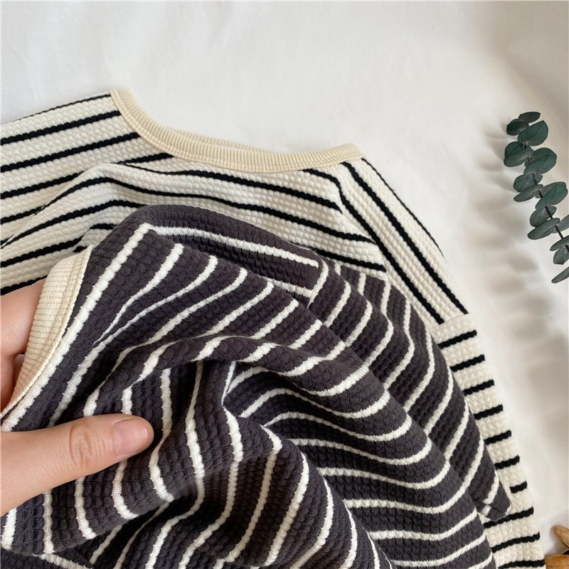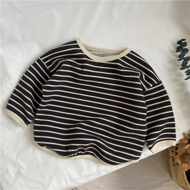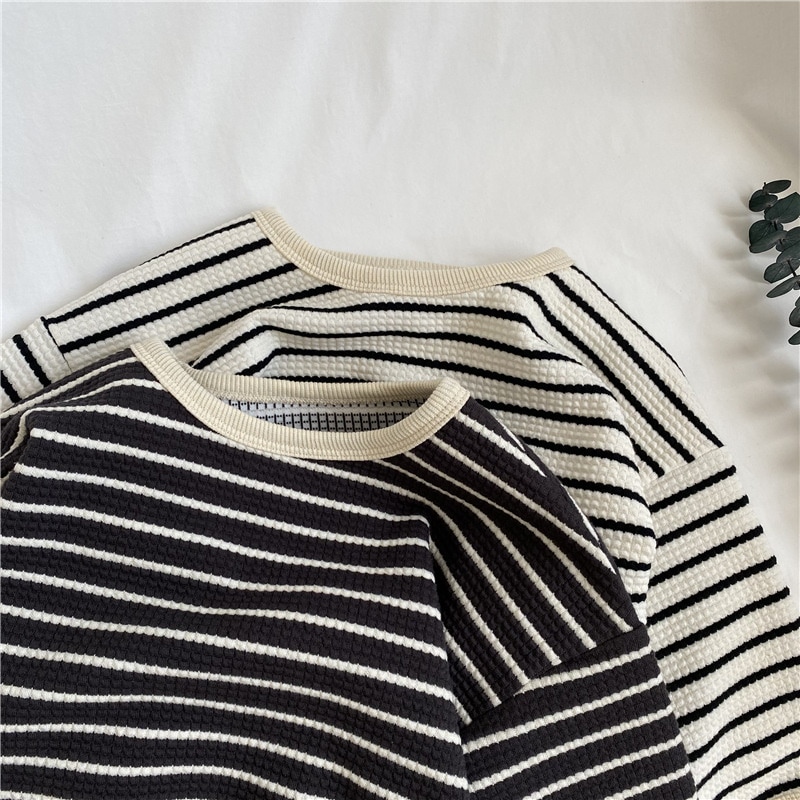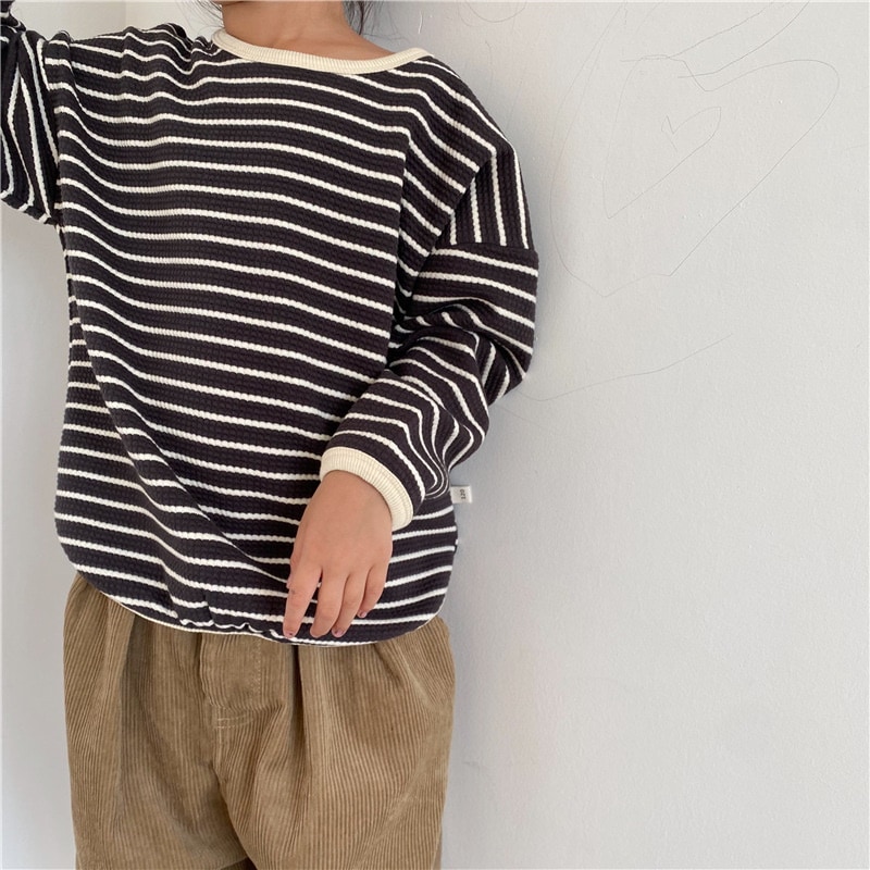韓国版春の新作子供の定番ストライプのロンT男女子供ニット長袖プルオーバー Tシャツ