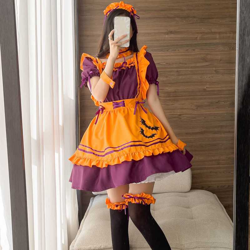 メイド服 コスプレ メイド エプロン セット 半袖 コスプレ衣装 セクシー メイド コスプレ オレンジ色 セクシー コスチューム レディース 可愛い 大人用 ハロンウィン仮装 ショート丈 ミニ丈 制
