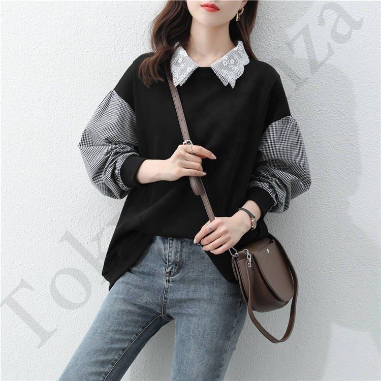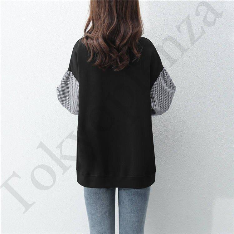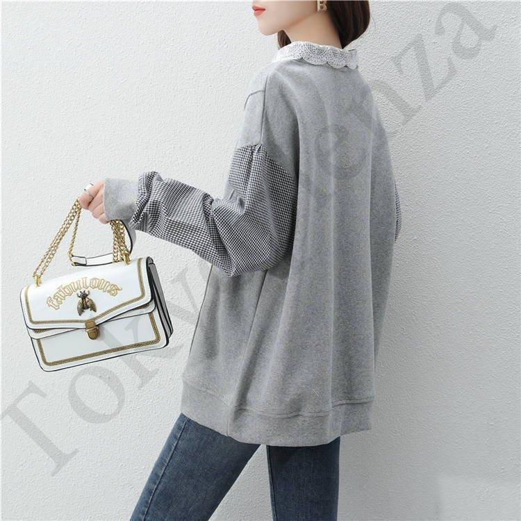 スウェット パーカー レディース 30代40代 秋 長袖 切り替え トップス チェック プルオーバー パーカー カジュアル 大きいサイズ 着痩せ