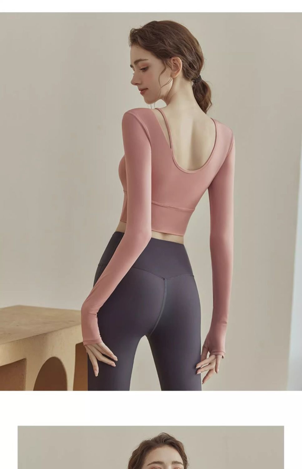 色の分類: マスタードグリーン+グレータイツ セサミブラック+グレータイツ マスタードグリーン+ブルータイツ セサミブラック+青タイツ セサミブラック+黒タイツ ピンク長袖【胸パッド付き】 ピンク長袖+黒ヨガパンツ【胸パッド付き】
