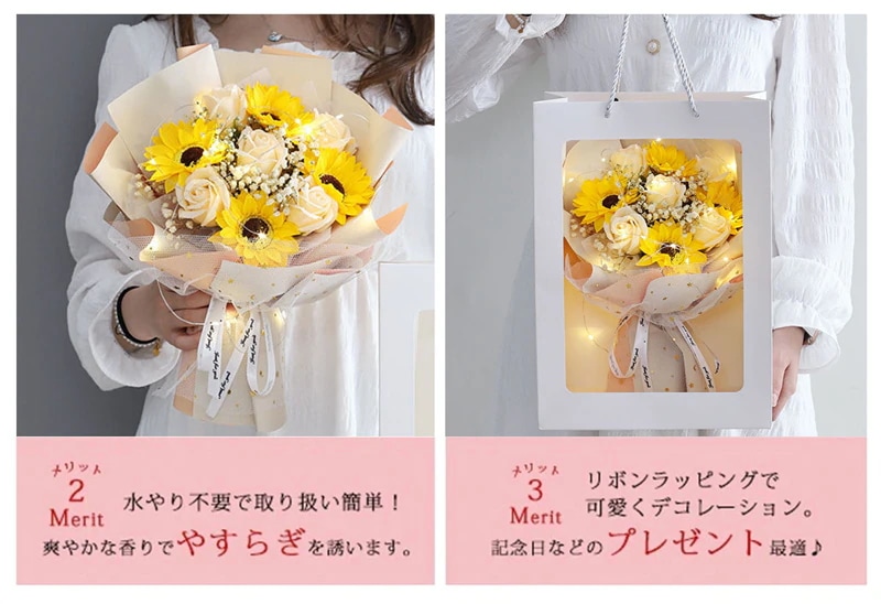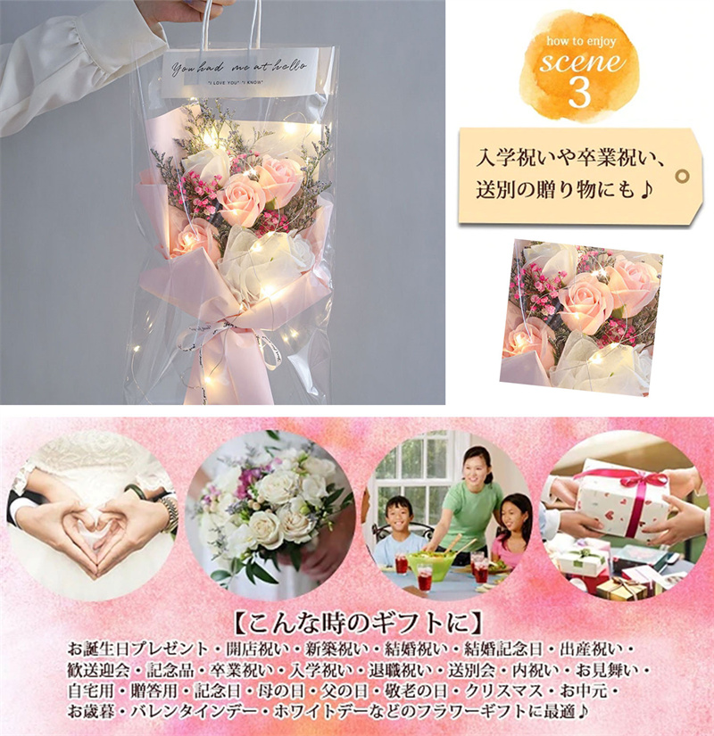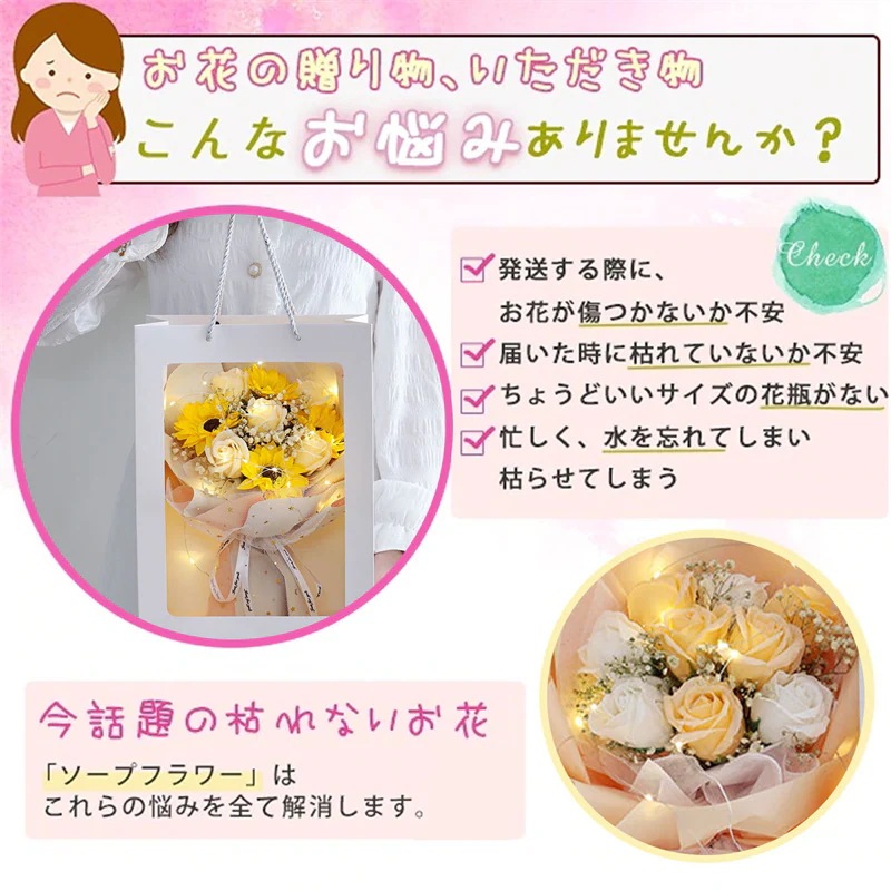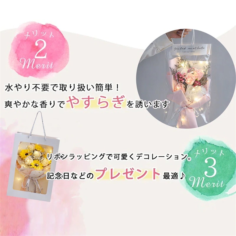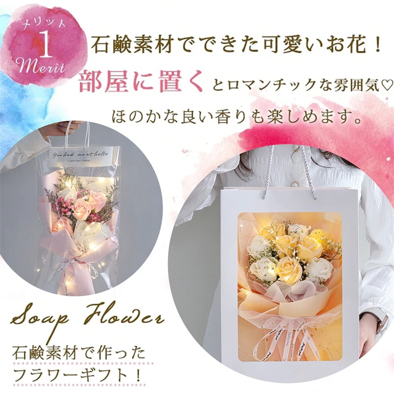 花束 ソープフラワー 花束 ブーケ ローズ カーネーション 誕生日プレゼント バレンタインデー 母の日 ク 造花