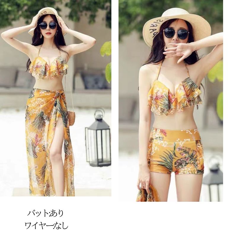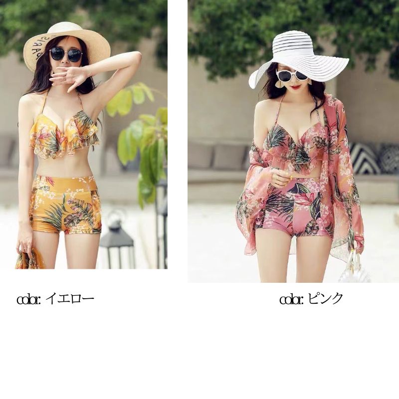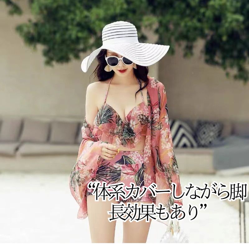 水着 レディース 体型カバー3点セット ワンピース水着 セパレート ママ水着 フリル 花柄 スカート 細見え ぽっちゃり ブラック かわいいピンク ブラック ガーリー フェミニン