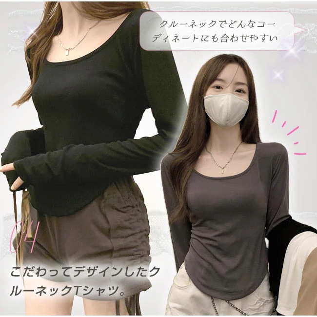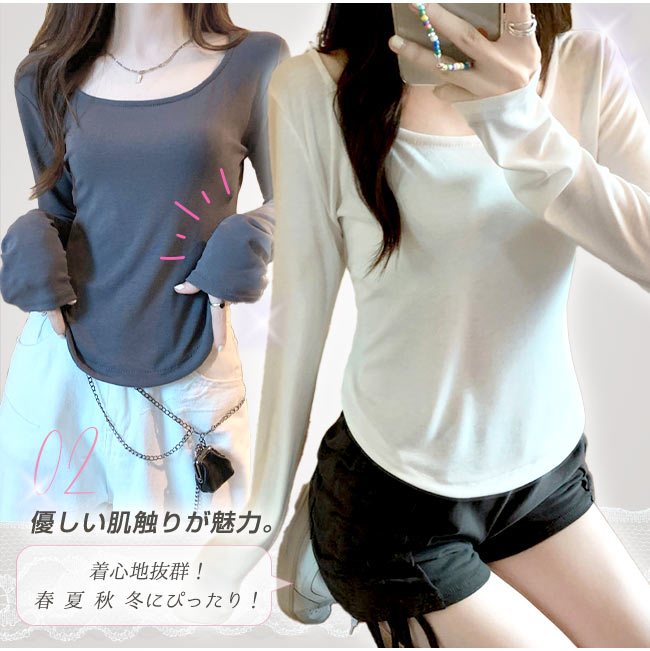ロイヤル クルーネック カットソー 着痩せTシャツ インナー ラウンドカット レイヤード 重ね着 レディース 長袖 トップス おしゃれ 薄手 無地 柔らかい OL 通勤 オフィス 体型カバー