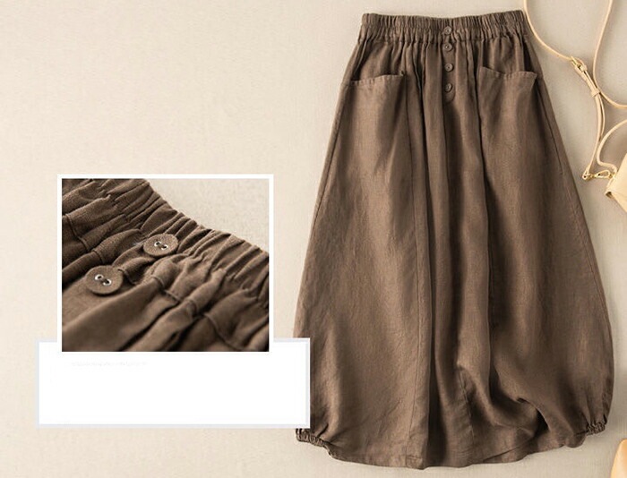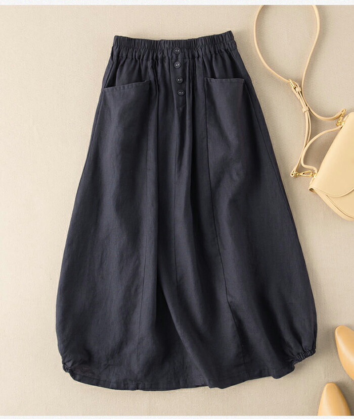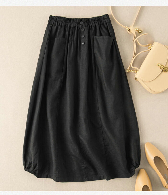 スカート ロング レディース 黒 バルーンスカート フレアスカート フレア ボトムス ロングスカート 綿麻風 ミモレ丈 ナチュラル おしゃれ エスニック ポケット付き ファッション シンプル きれいめ