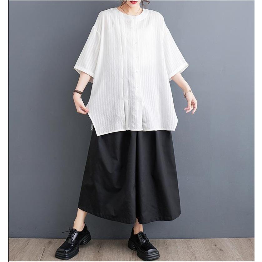 春 シャツ ブラウス トップス レディース 自然に体型カバー 大人カジュアル 5分袖 無地 大きいサイズ ベーシック 爽やかで上品 いろんな着こなしが楽しめる