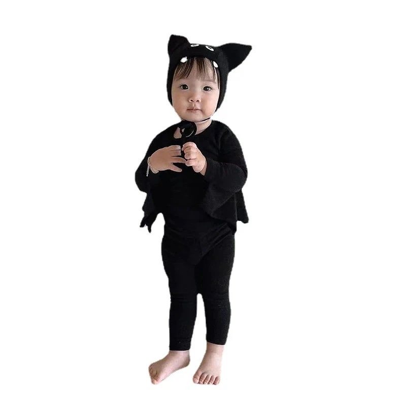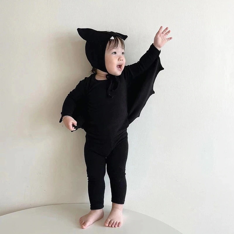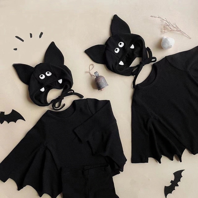 ハロウィン ベビーお揃い男の子女の子ロンパース長袖黒コウモリお化け ハロウィン