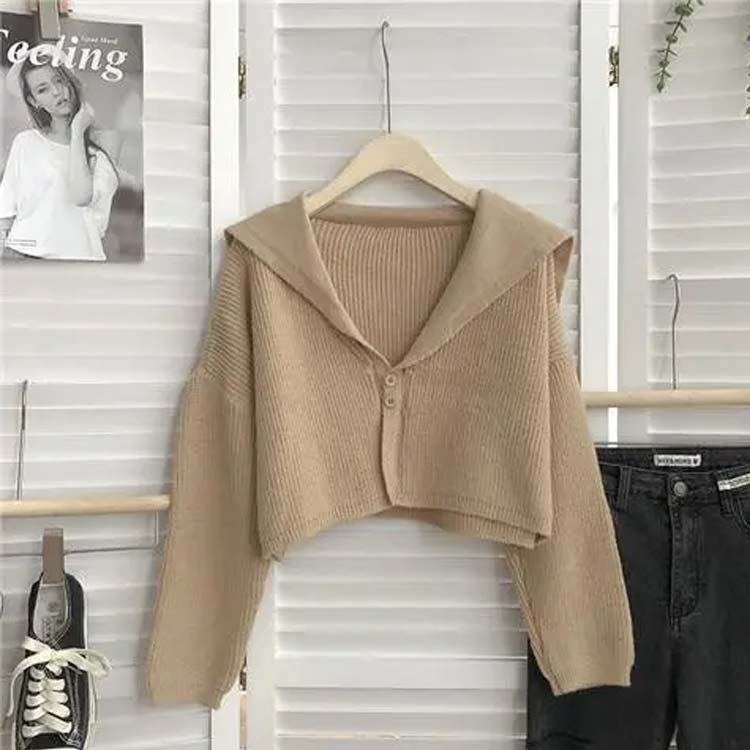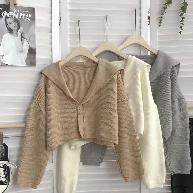 ショート丈 ざっくり ニット カーディガン レディース ニット 羽織り 長袖 ゆったり ボリュームスリーブ リブニット ニットカーディガン ボレロ vネック 制服 セーラー服 襟付き きれいめ 大人