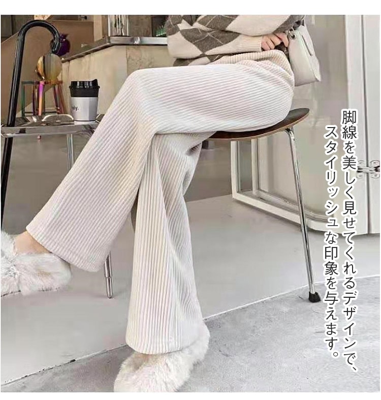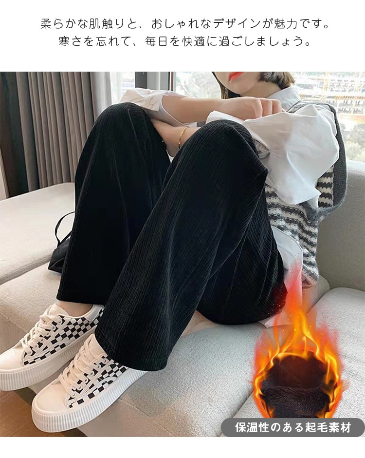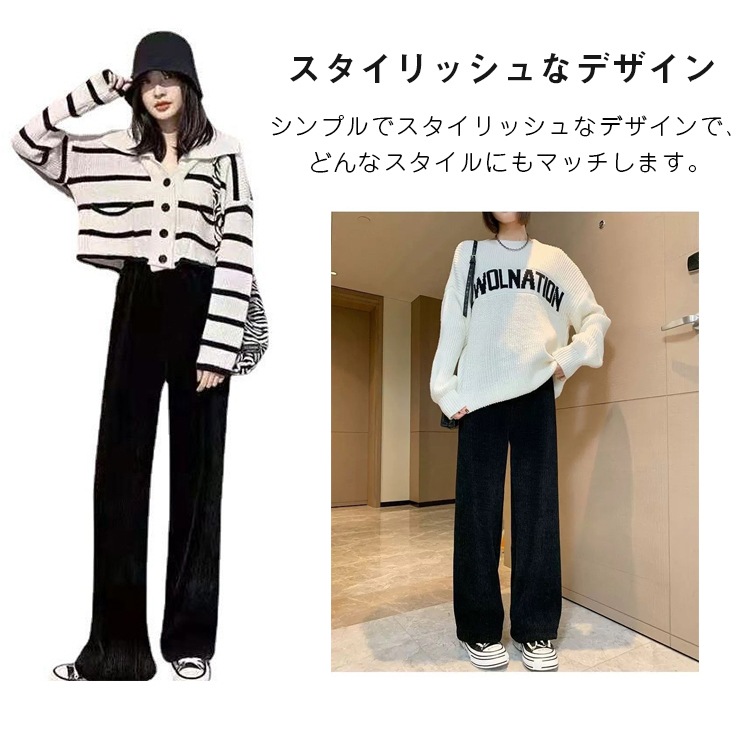 春秋新作 シェニール ワイドパンツ 裏起毛 ハイウエスト ジョガーパンツ レディース クリームパンツ 百掛け ゆったり 体型カバー 細見え ストレッチ ハイウエスト 着痩せ