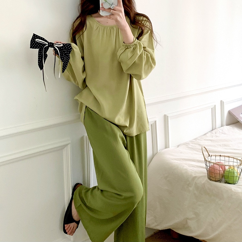 2025春新登場 高級感 日系 パジャマ レディース 無地 柔らかい快適 長袖 ルームウェア 春秋 通気性 大きいサイズ パジャマ セットアップ 韓国ファッション ゆったり部屋着 上下セット