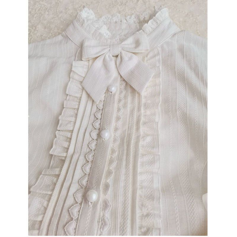 Qoo10限定 シャツ t コスプレ ロリータ ブラウス レディース マトンガールのロリータ風春脚フリルレースロリータ長袖ジャガードシャツ和風