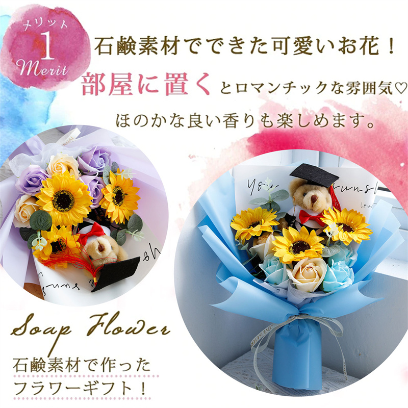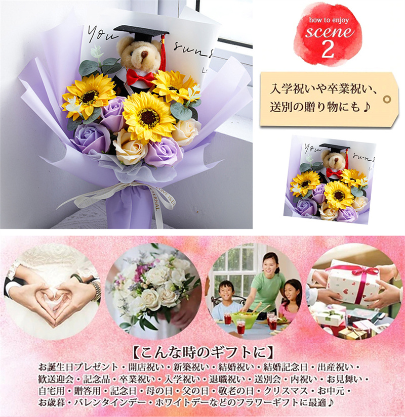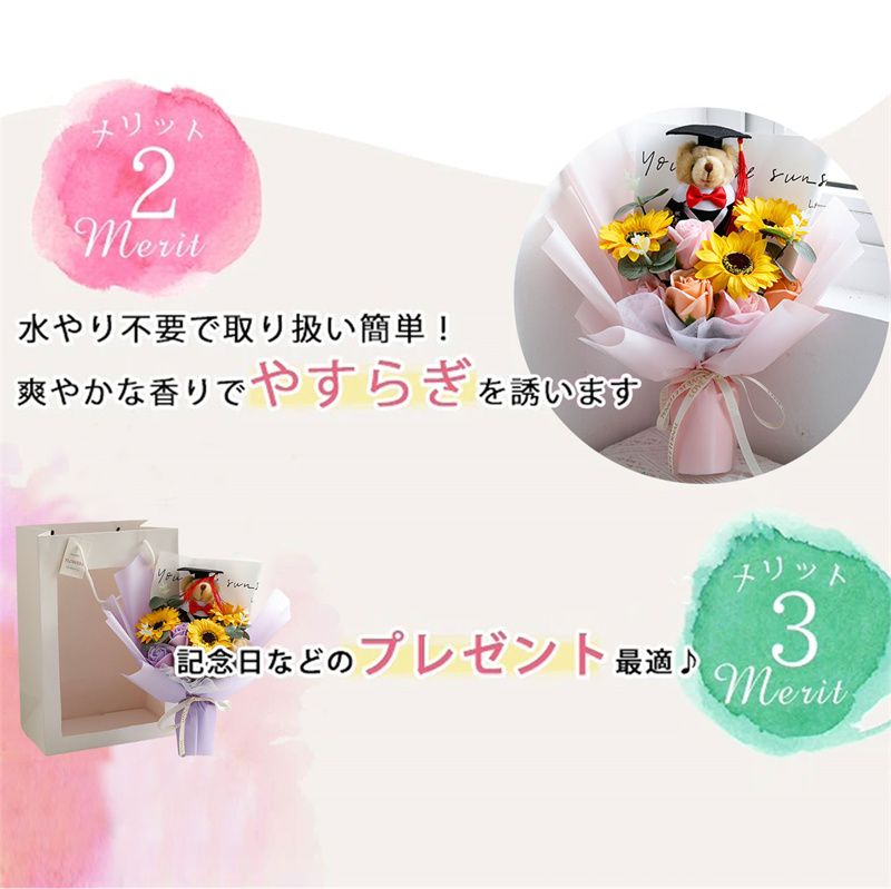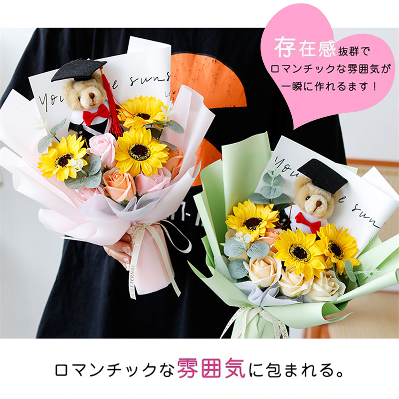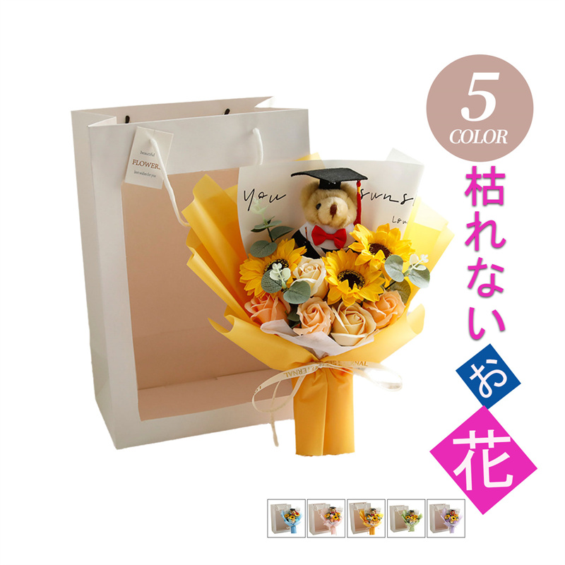 入学式 卒業式 ギフト ぬいぐるみ 花束 向日葵 クマ 手提げ袋 枯れない花 ブーケ 枯れない花 花束