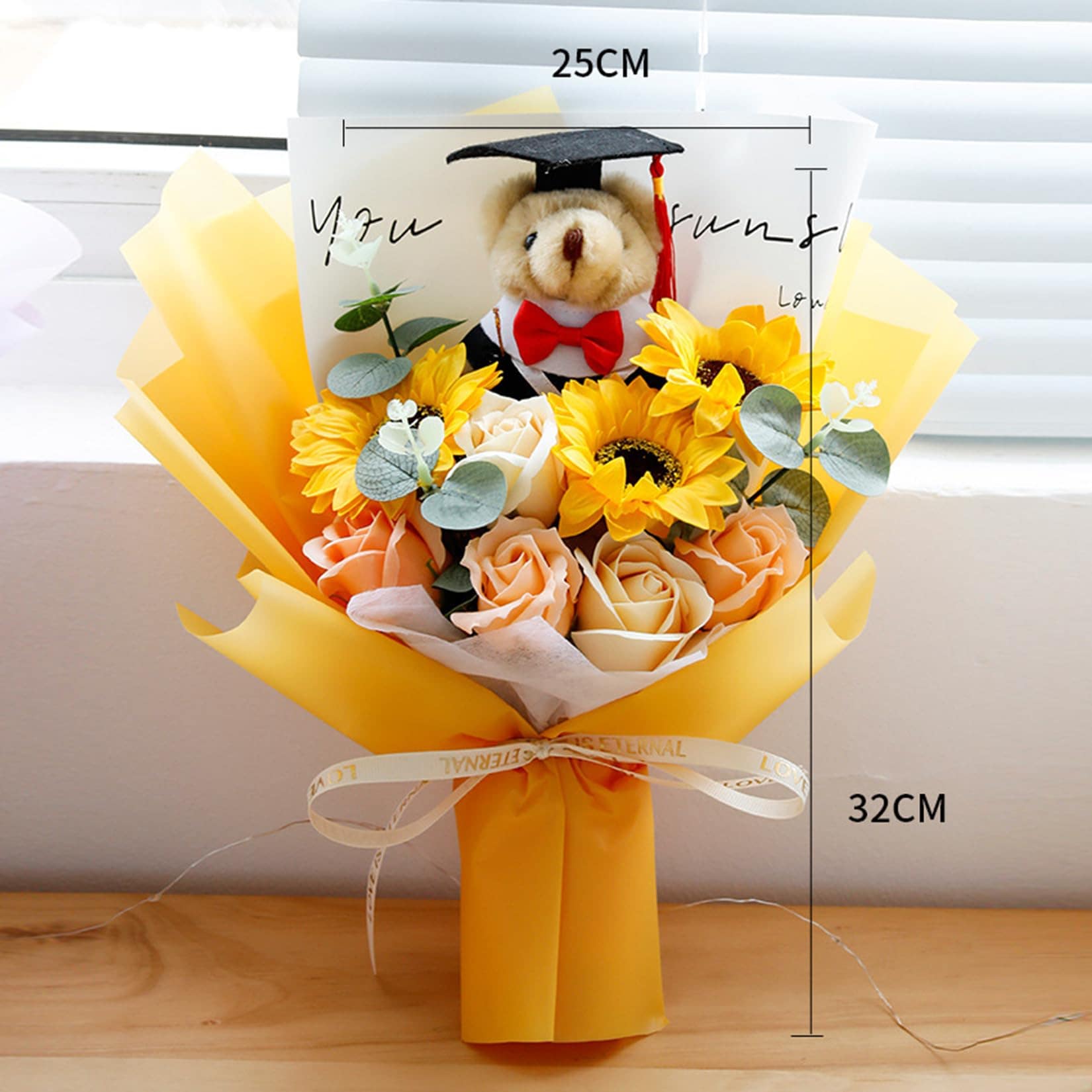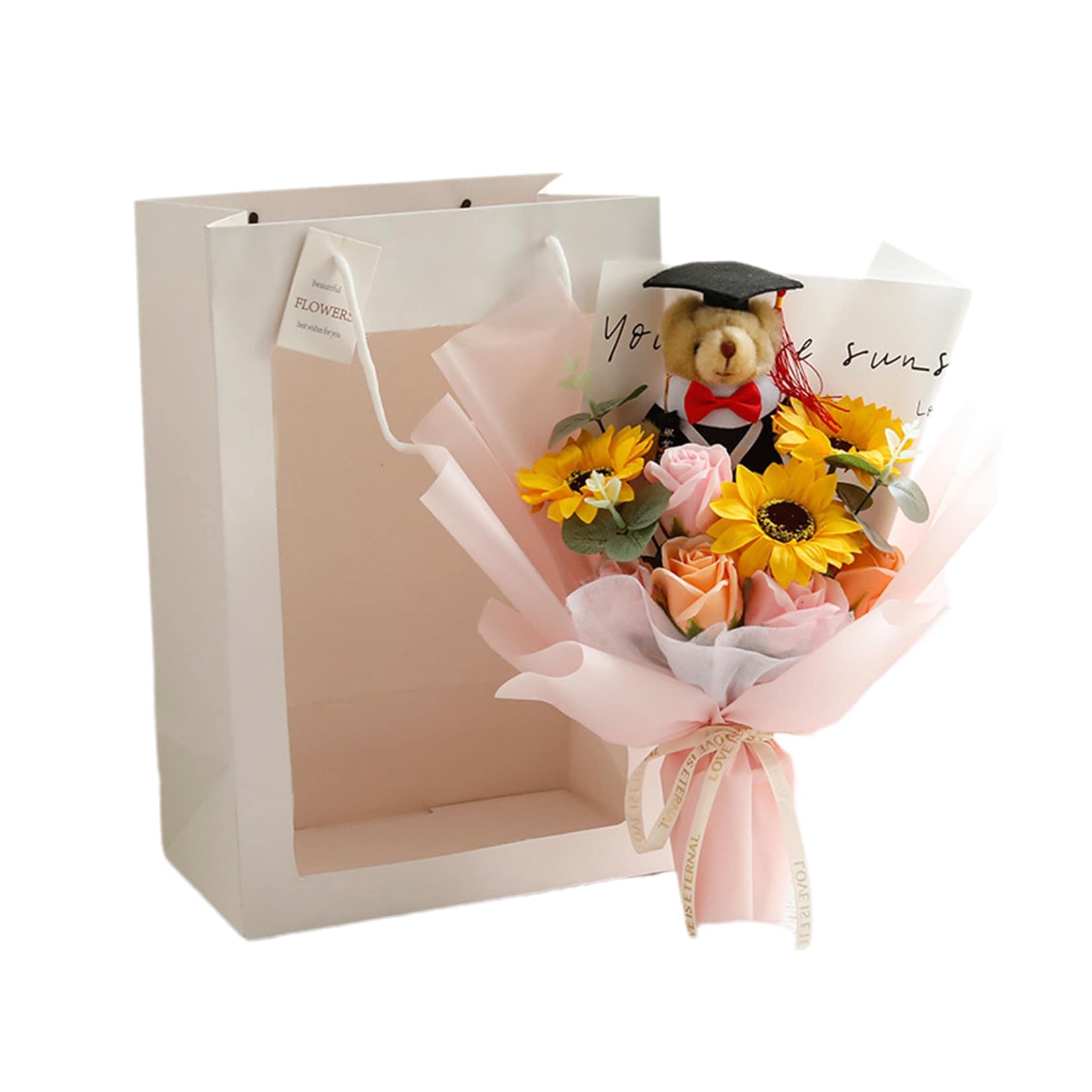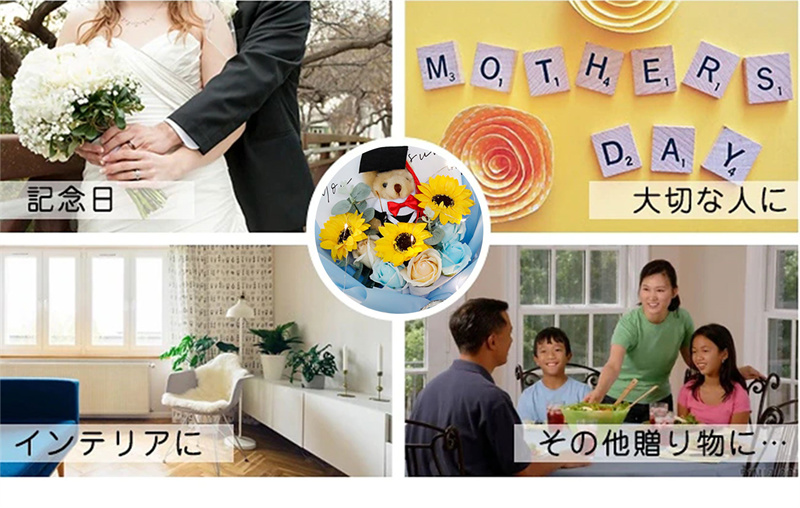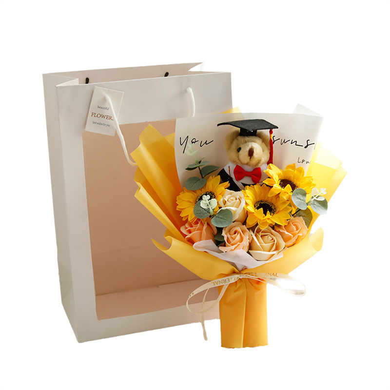 入学式 卒業式 ギフト ぬいぐるみ 花束 向日葵 クマ 手提げ袋 枯れない花 ブーケ 枯れない花 花束