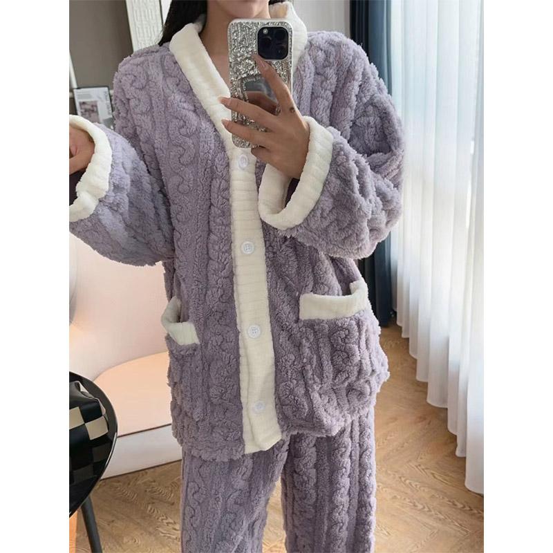 トップス ルームウェア 前開き ゆったり 防寒 長袖 冬 ボア 部屋着 上下セット もこもこ レディース かわいい パジャマ 寝巻き 暖かい 保温 あったか 厚手