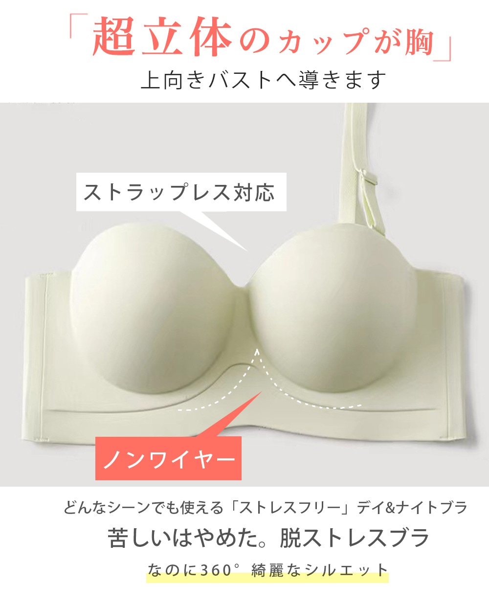 スタイルアップブラ 下着 ブラジャー レディース ノンワイヤー ワキ肉 紐無しストラップレス 対応 大きいサイズ 盛れる もちもち シンプ