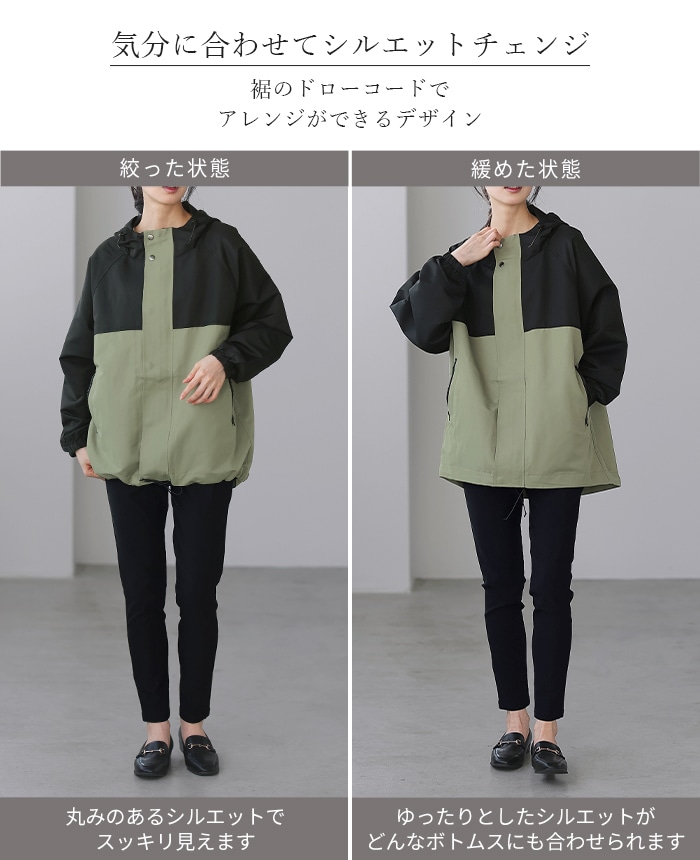 裾はドローコード付きで、気分に合わせてシルエットが変えられます。