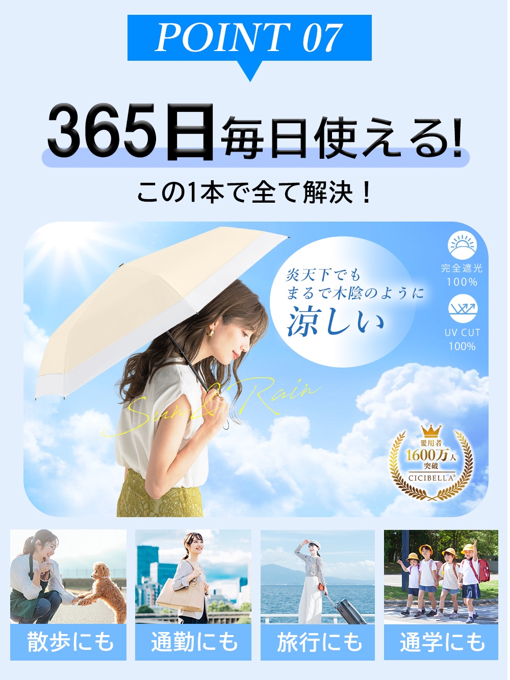 CICIBELLA 日傘 2025版 晴雨兼用 折りたたみ日傘 軽量 遮光率99% 遮熱 風に強い日傘 丈夫 通勤 紫外線対策 海辺用 夏フェス 紫外線対策 梅雨 プレミアム 日傘