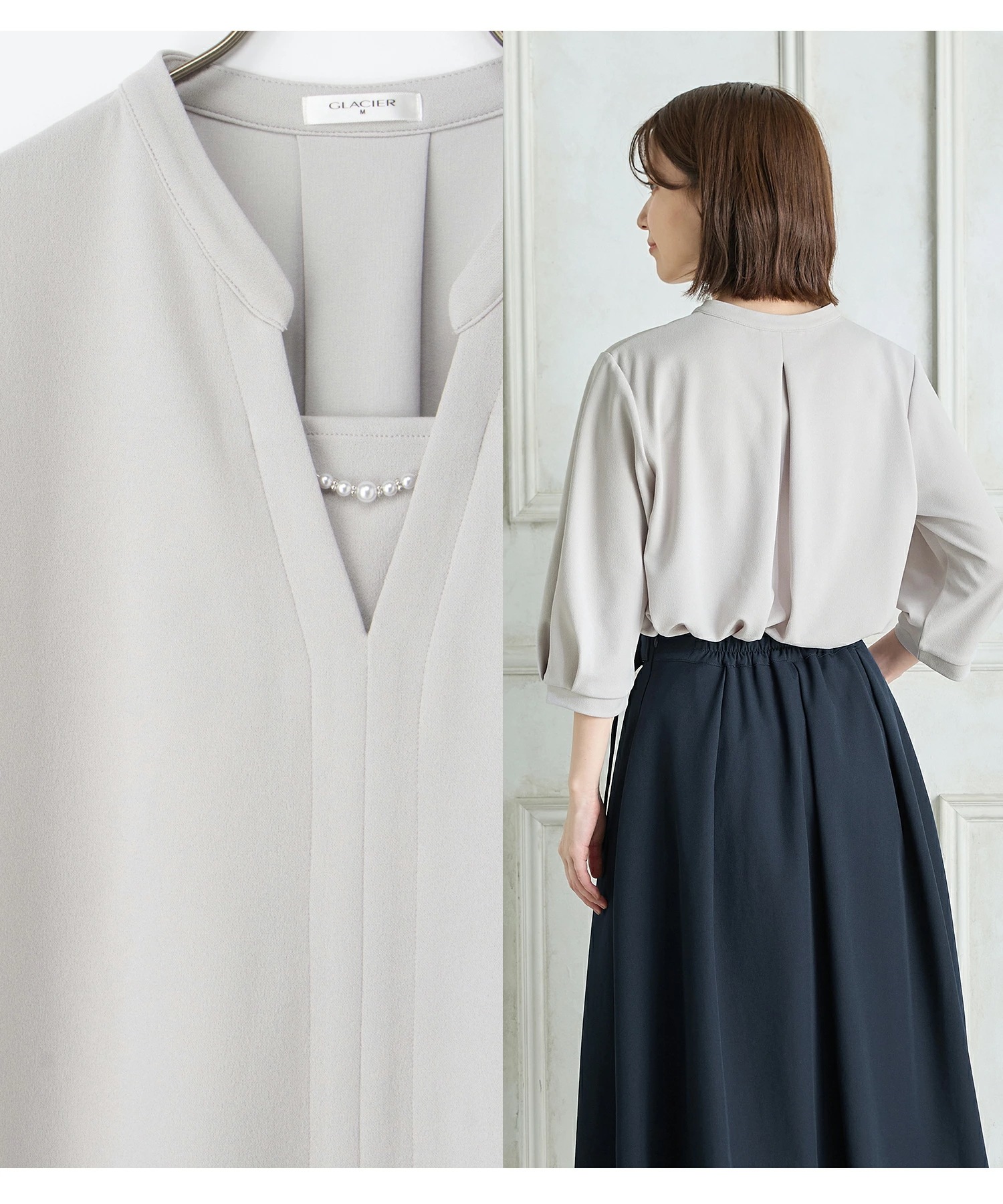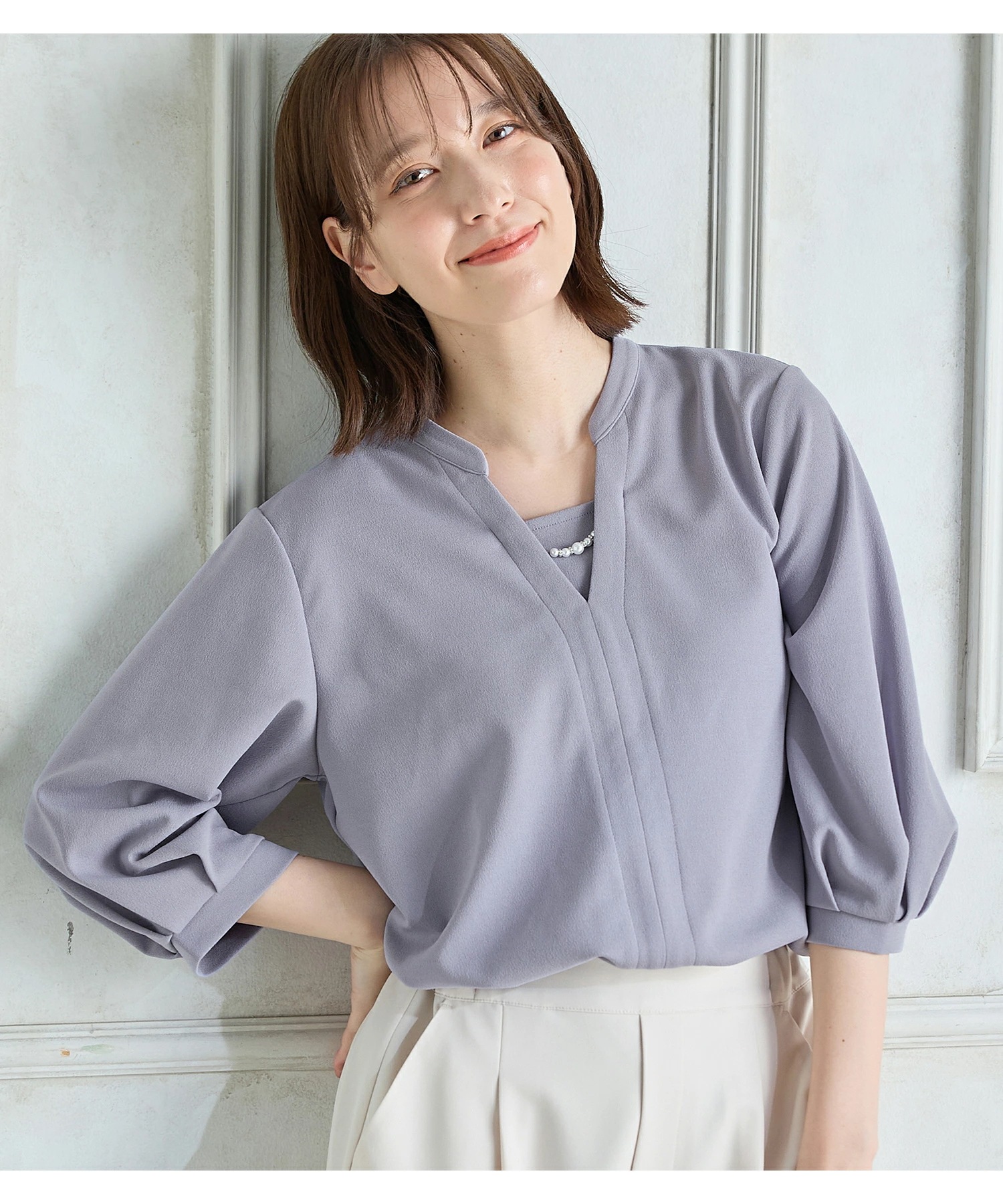 シアースリーブ ドッキングシャツ ボウタイシャツブラウス