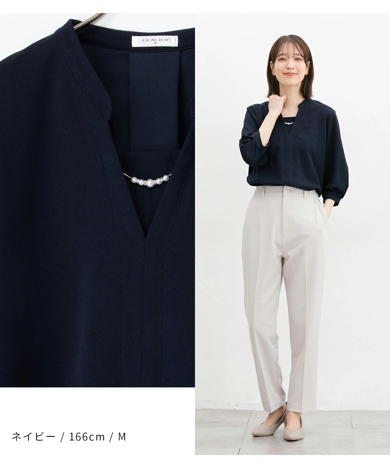 Honeys 7分袖アクセ付トップス トップス カットソー アクセ付トップス ハニさら 大きいサイズ オフィス Tシャツ カットソー