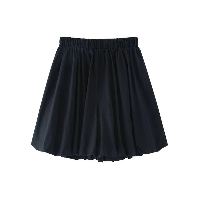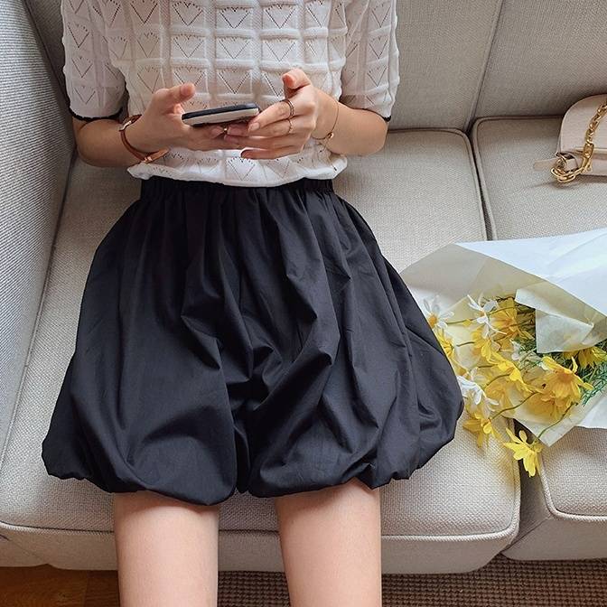 ボトムスショートパンツキュロットバルーンフレアパンツミニ丈体形カバーナチュラルリラックスウエストゴムプラスサイズボリュームキュートガーリーシンプル大人女子かわいいモダンレトロブラックホワイト