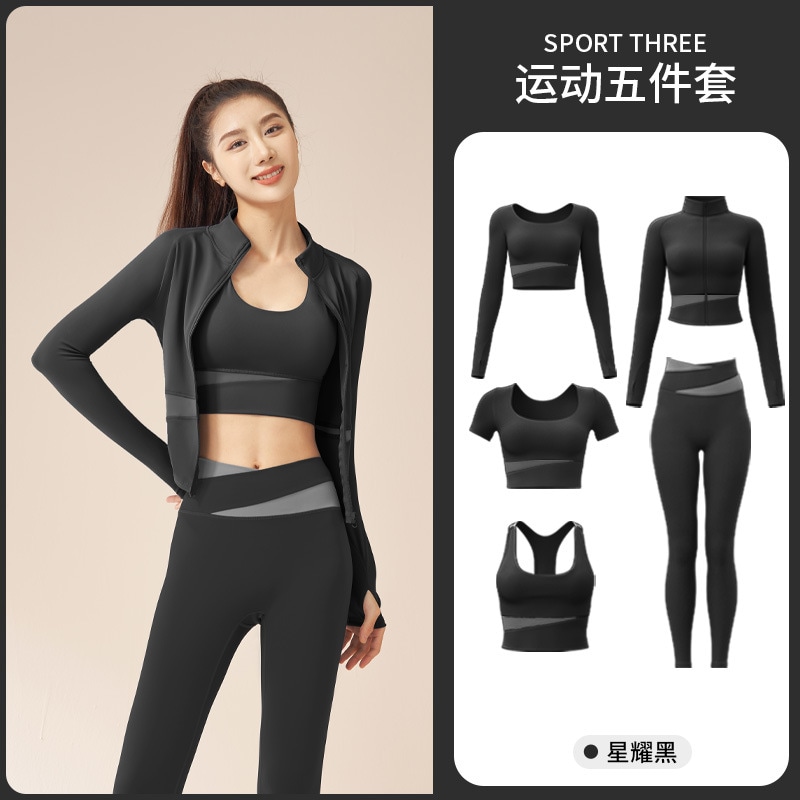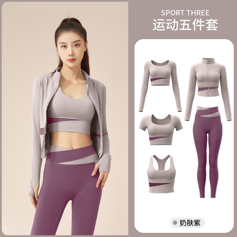 ヨガウェアもファッション セットアップ ヨガトップス スポーツウェア 5点セット ヨガウエア ウエア 速乾性 フィットネ レディース 上下セット 運動セット