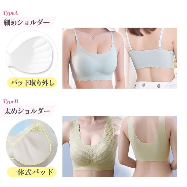 スポーツ ブラ 補正下着シームレスブラ ナイトブラ スカラップ 美胸 ブラジャー パッド付き ノンワイヤー 昼夜兼用 インナー ブラジャー
