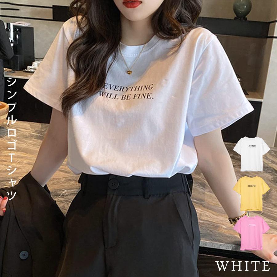 Tシャツ レディース 春 夏 春夏 白 カットソー トップス ロゴ Tシャツ 伸縮性 ゆったり ストレッチ カジュアル ロゴtシャツ 半袖トップス きれいめ 半袖