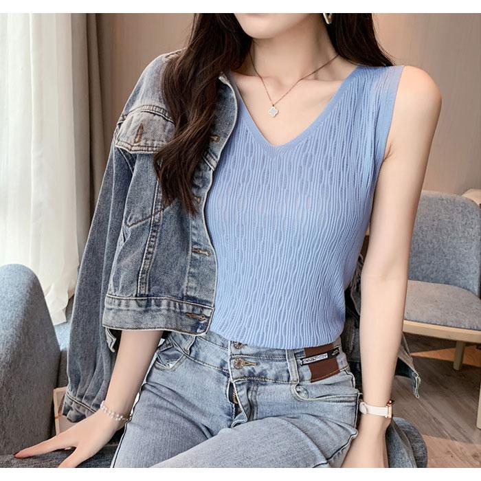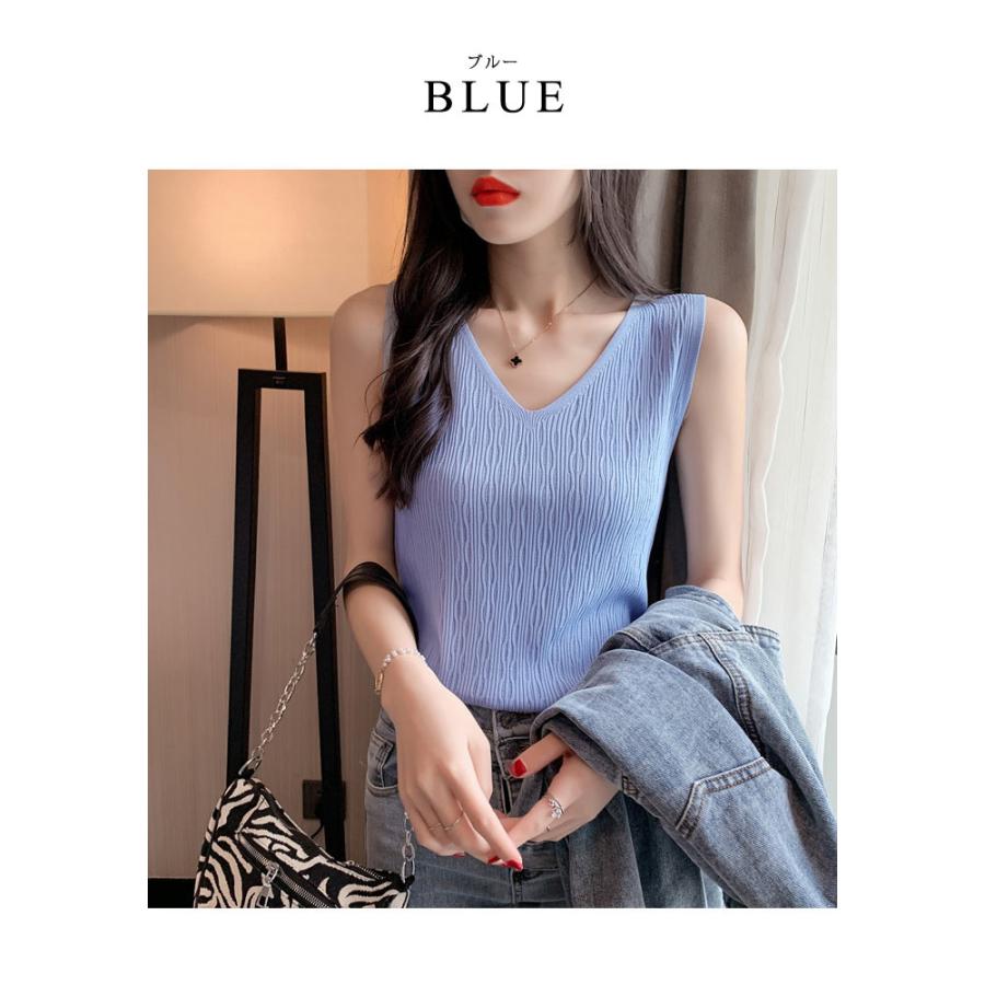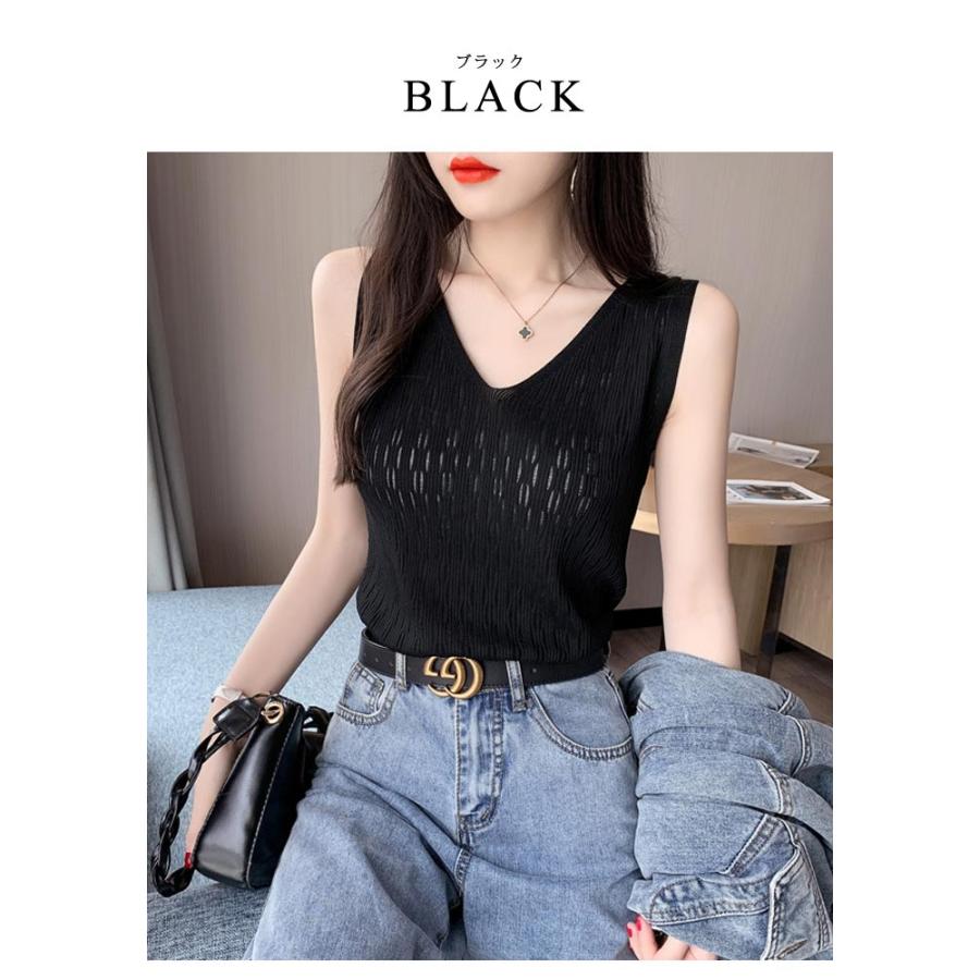 ニットトップス レディース 春 黒 白 タンクトップ ブラック ホワイト ベージュ ピンク ブルー ノースリーブ サマーニット Vネック キャミソール