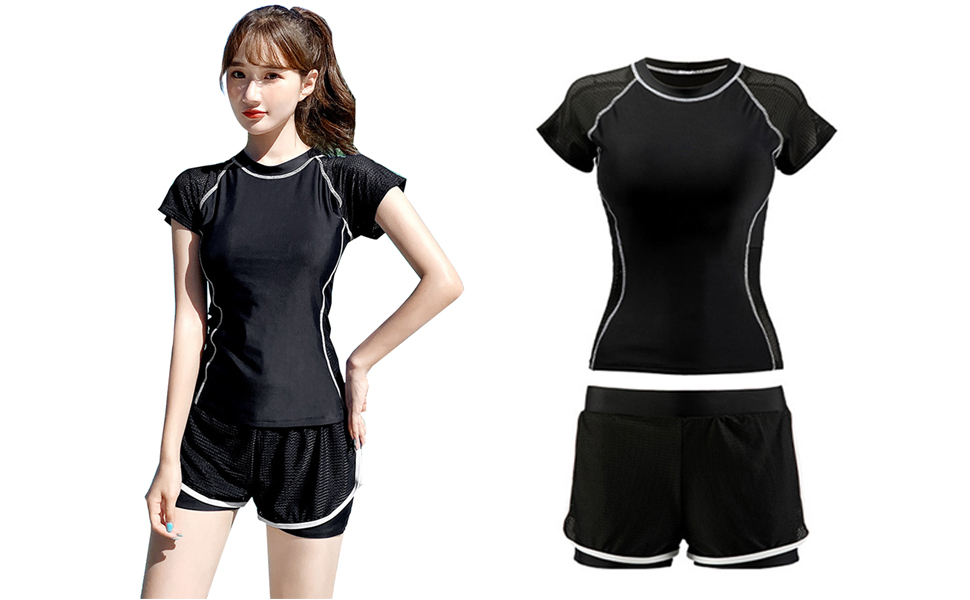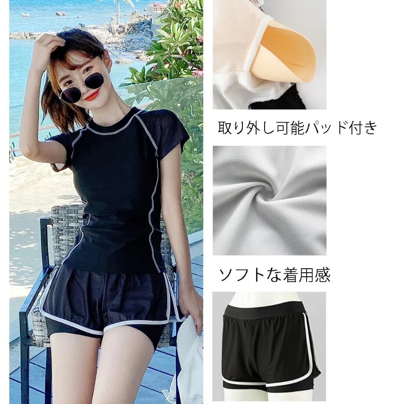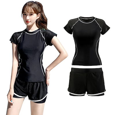 水着 レディース セパレート 高校生 学生 水着 半袖ラッシュガード ショートパンツ 2点セット 水着セット