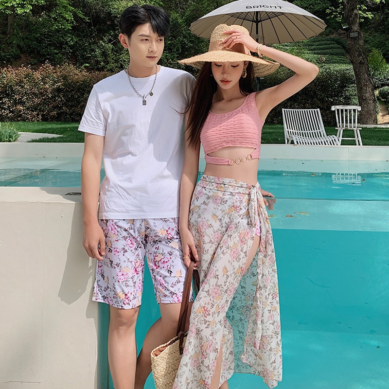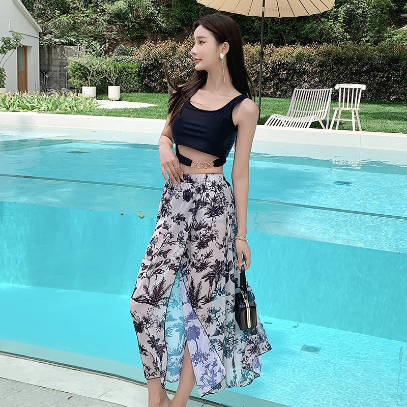 DP-YY-20 温泉島のバケーションカップル水着女性の夏の保守的なスタイル腹部を覆う薄さ集まり花柄シフォンのロングスカート水着 水着セット