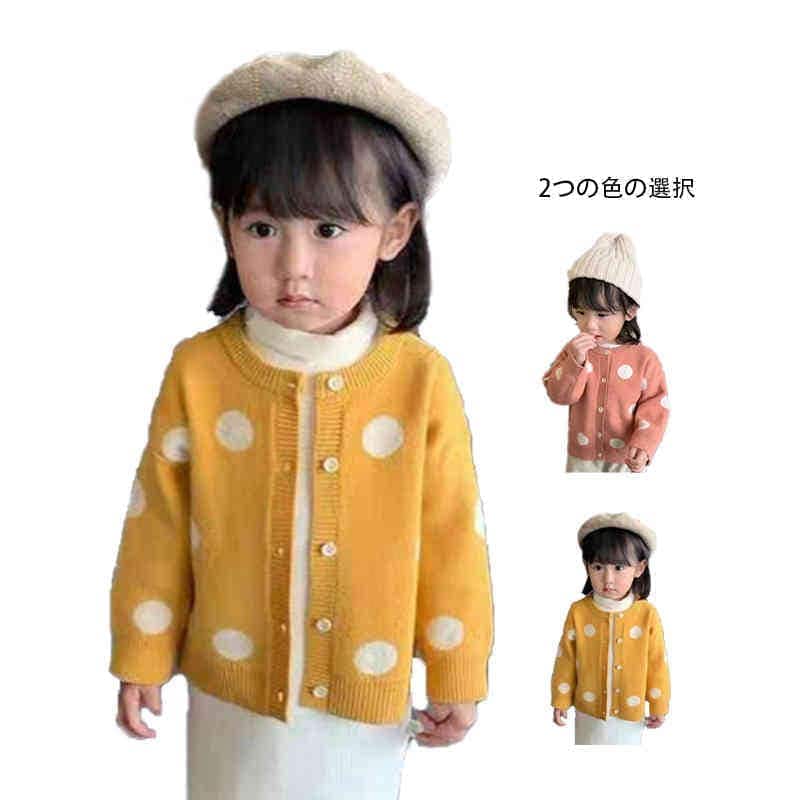 ドット柄カーディガン春秋ショート丈カーディガンキッズ丸襟カジュアルカーディガンドット柄カーディシンプルトップスカジュアル長袖女の子おでかけニットカーディガン