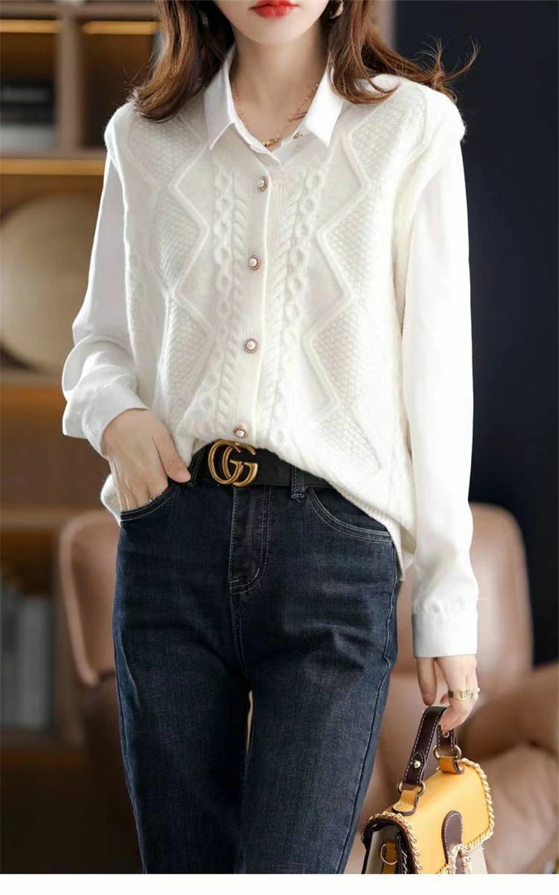 ニットベスト ベスト ニット レディース セーター ニットセーター ノースリーブ レイヤード カーディガン ニットトップス 前開け 重ね着 ニット ベスト ケーブル編み 春秋 Vルネック ドルマン 無