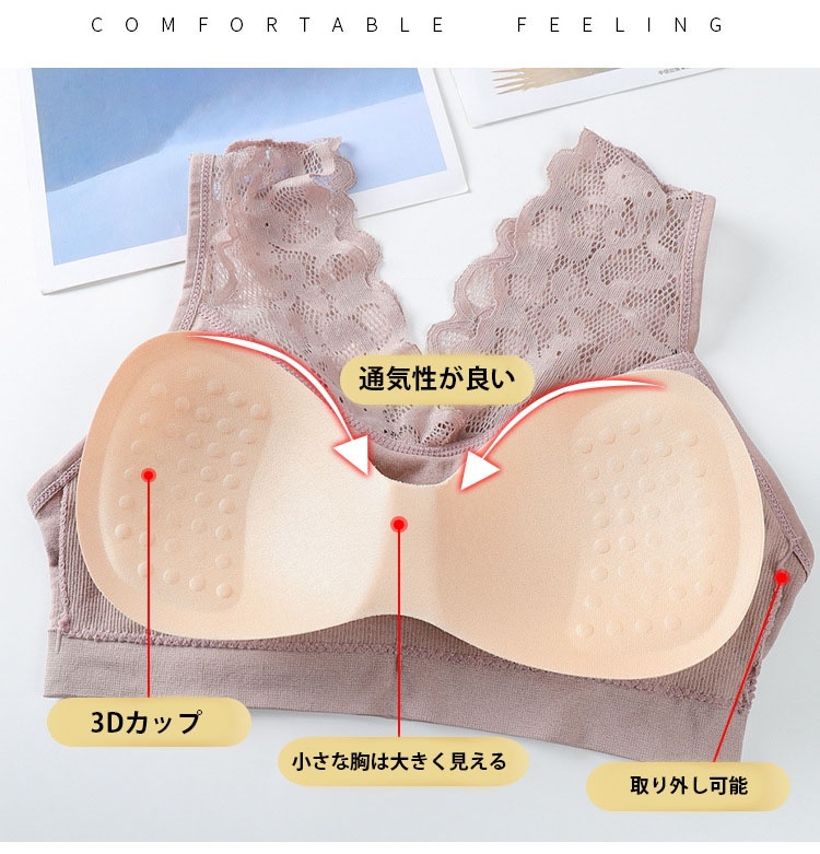 レディース 四季 タンクトップ 取り外し可能なカップ ブラジャー #ノンワイヤー #付属乳房縮小 #胸の垂れを防ぐ #レース