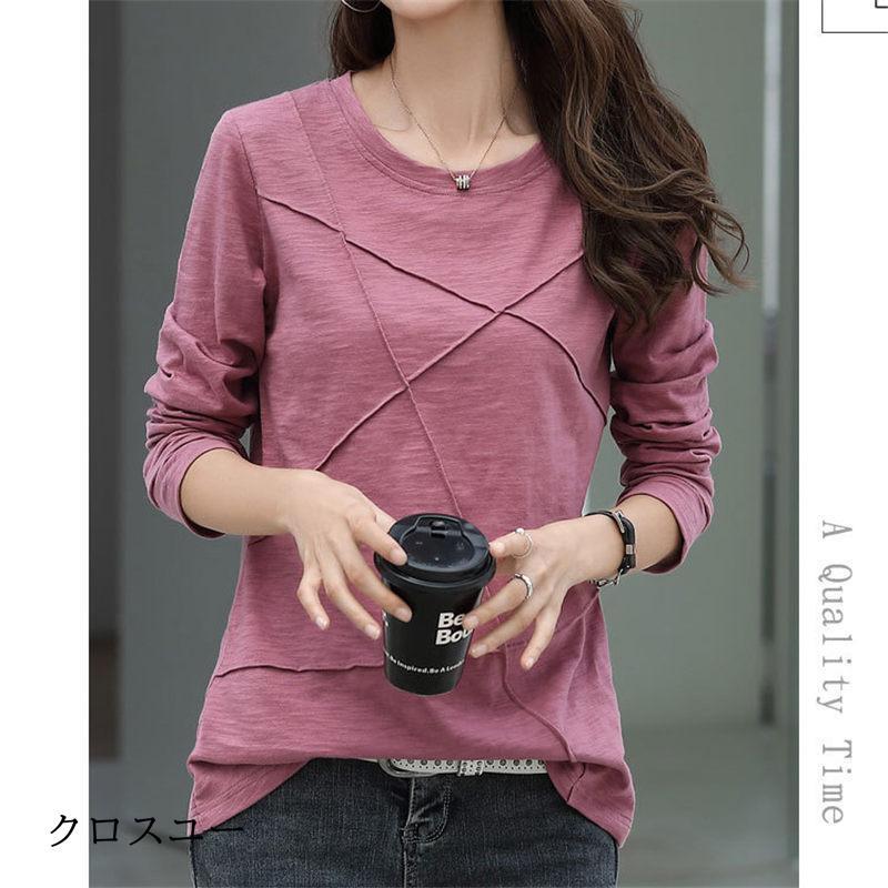 カットソー 長袖 Tシャツ レディース ス 秋春冬 tシャツ ロンT 重ね着風 オーバー 女性用 通勤 通学 体型カバー 着痩せ オシャレ Tシャツ カットソー