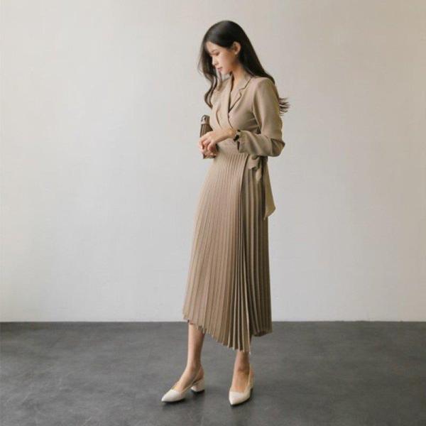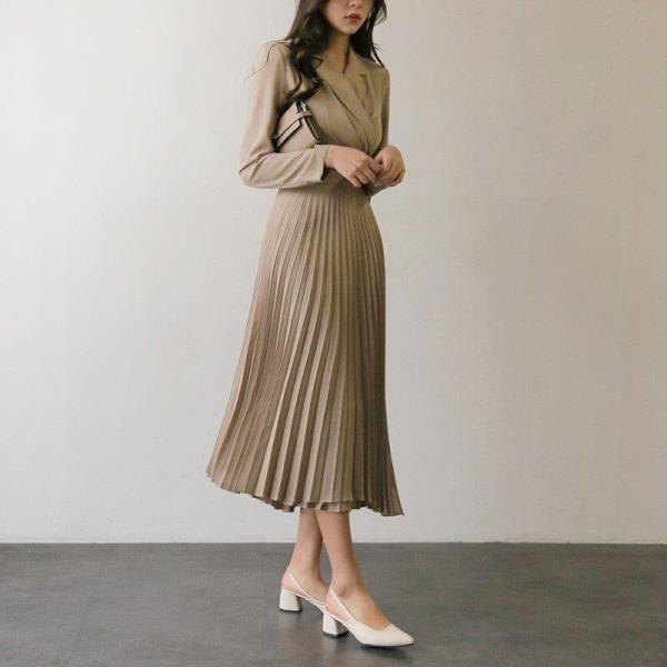 の入荷 在庫一掃 ワンピース レディース 春 きれいめ 韓国風 ロング丈 長袖 プリーツワンピース aライン 上品 着痩せ お洒落 大人 卒業式 母 通勤 OL 二次会