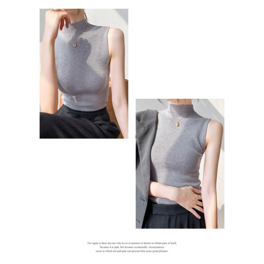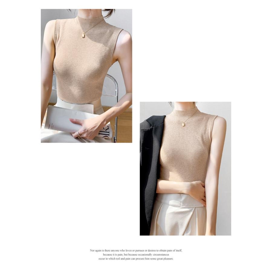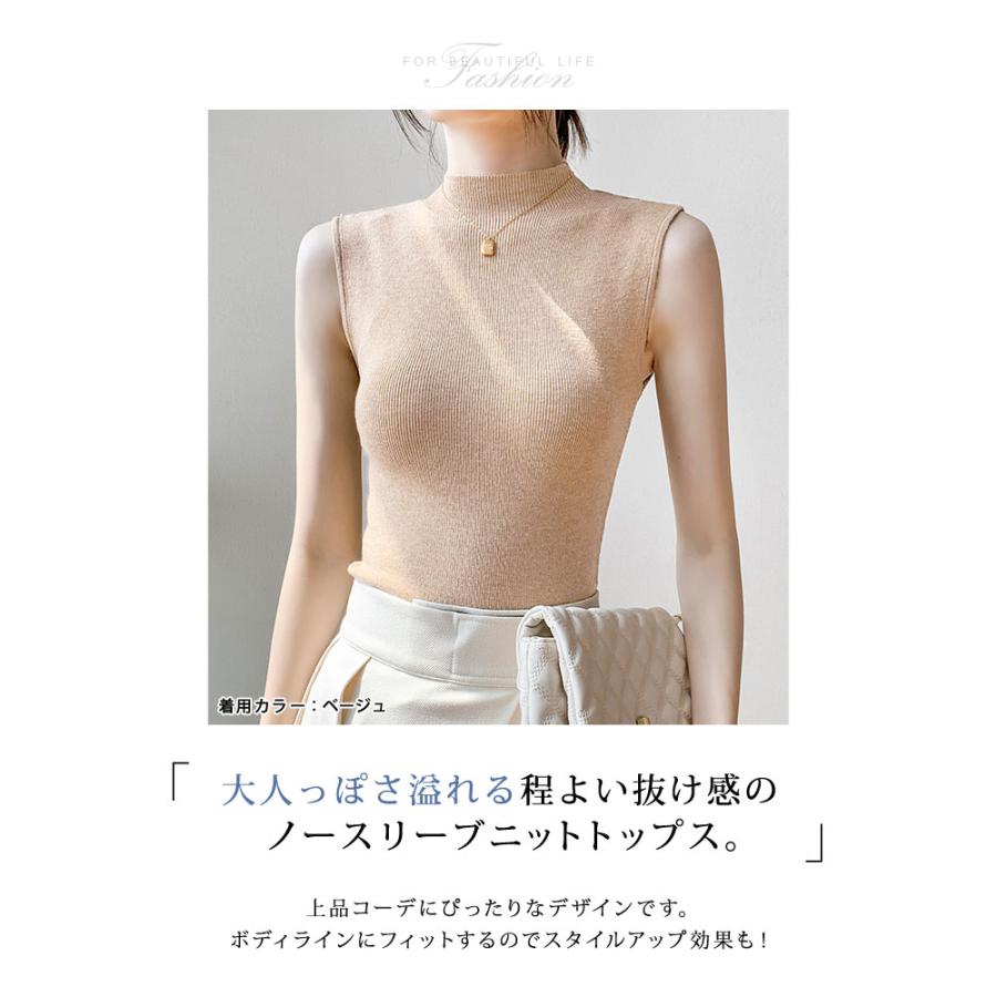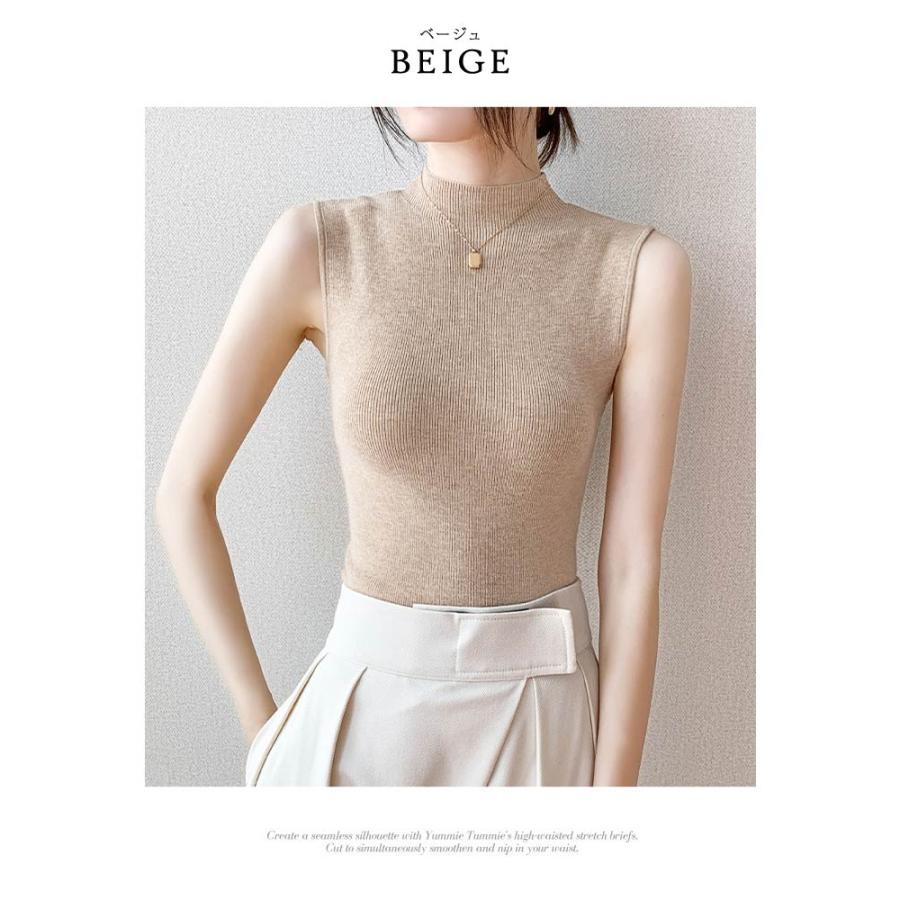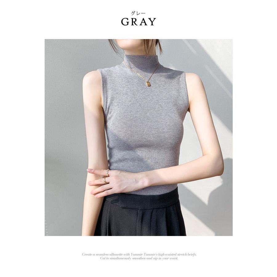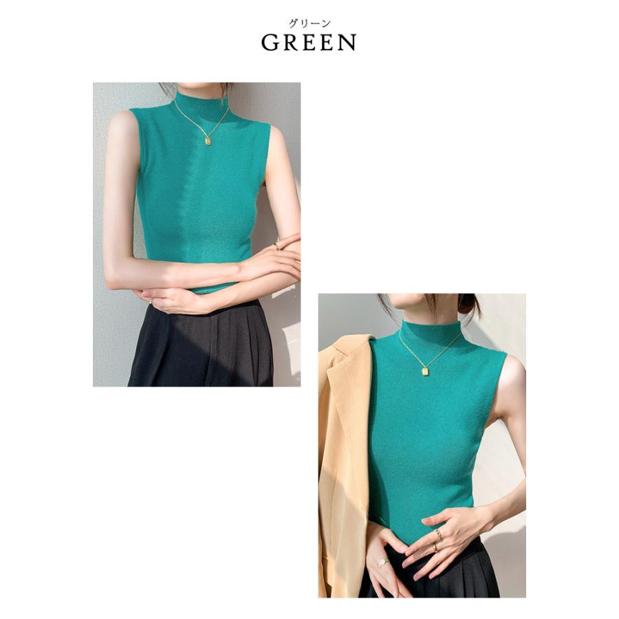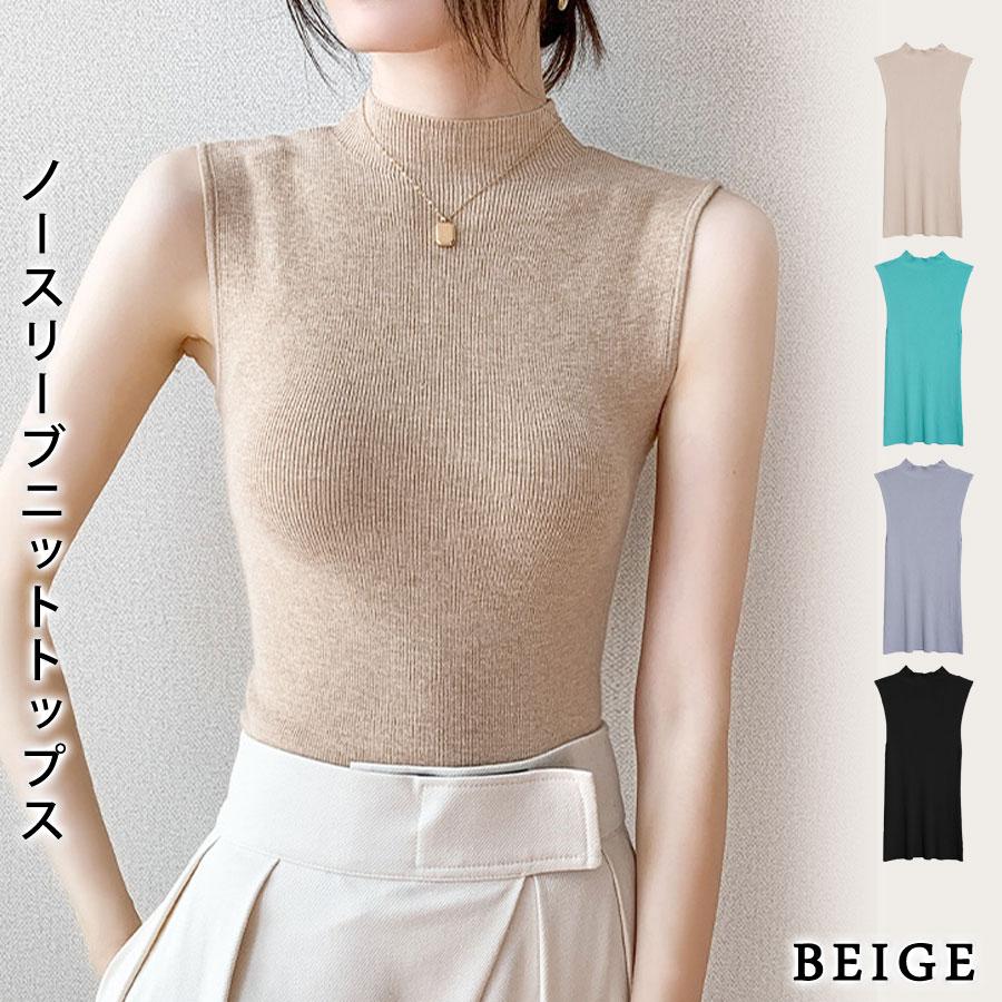 ニットトップス レディース 春 黒 ノースリーブ トップス サマーニット 無地 グリーン グレー ブラックル リブニット ベージュ 20代 30代