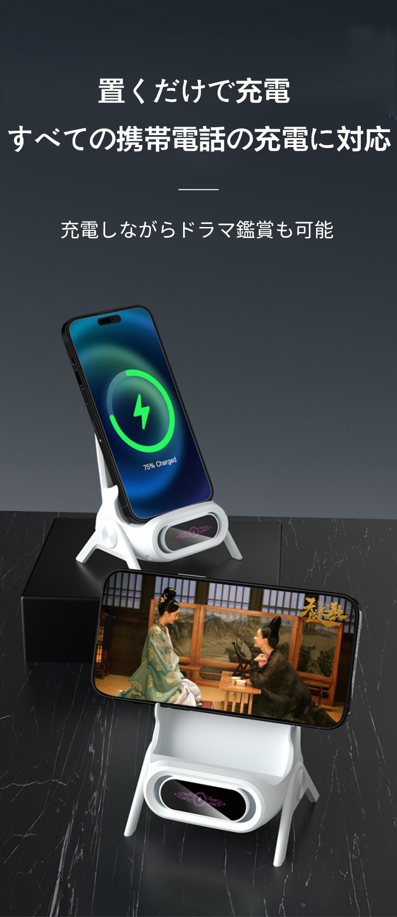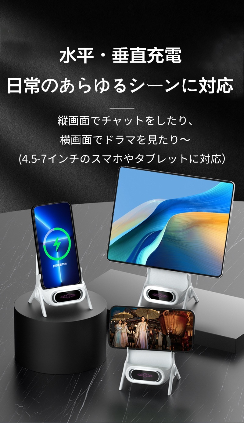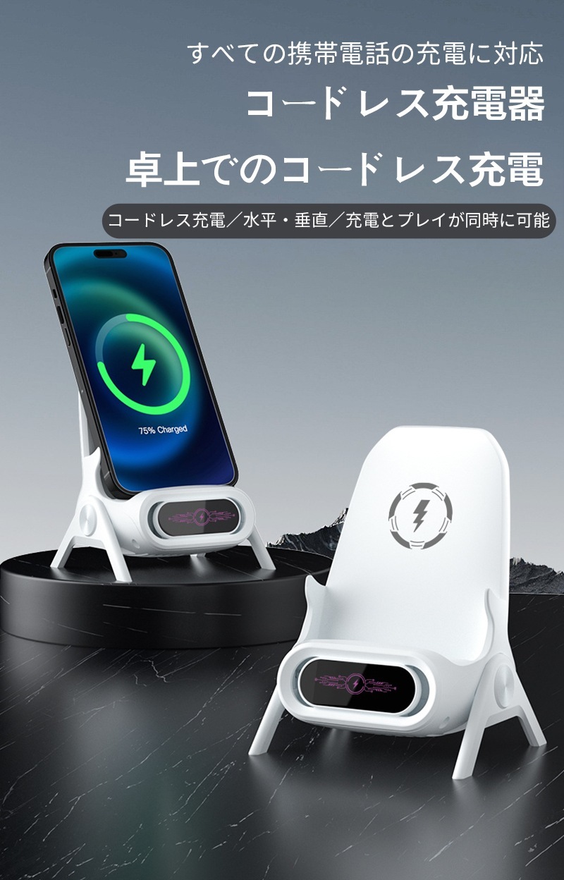 充電器 スマホスタンド コードレス急速充電 ワイヤレス充電機すべての携帯電話に対応スマホスタンド 急速充電電源コード 多機種対応 iphoneスマホ充電器 置くだけで充電