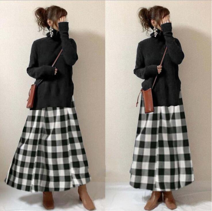 新作 シンプル 着痩せ チェック ワンピース ロングワンピース ワンピース ワンピース 秋冬 長袖 Tシャツワンピース 大きめサイズ 長袖ロング マキシ丈ワンピ