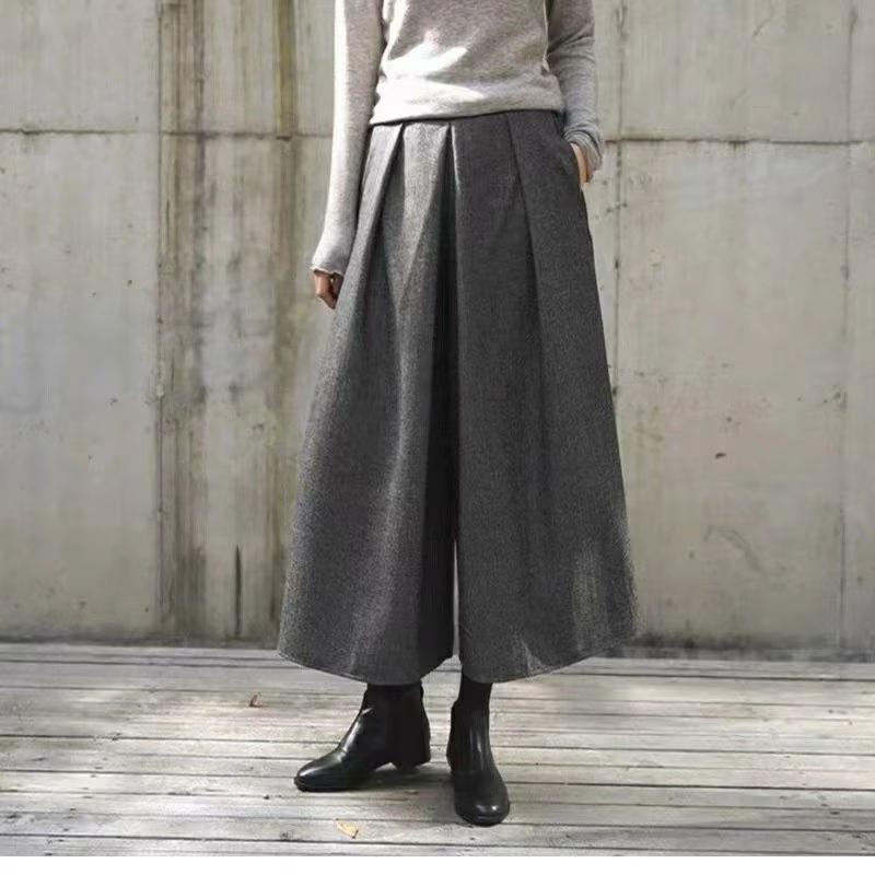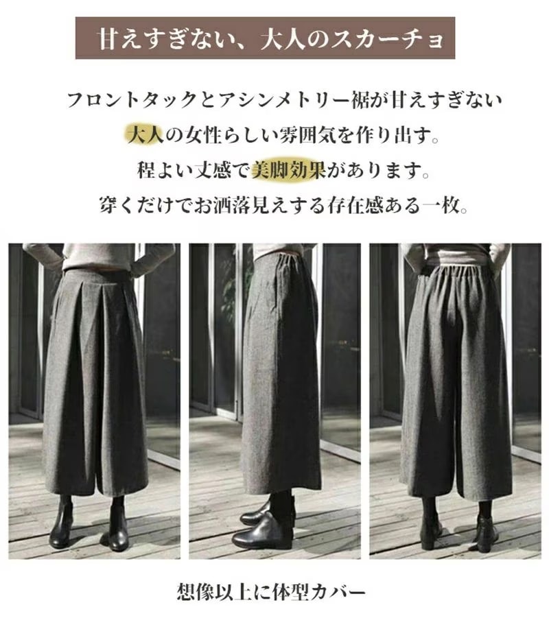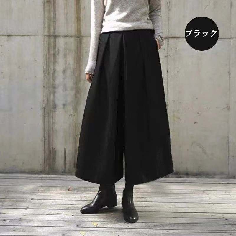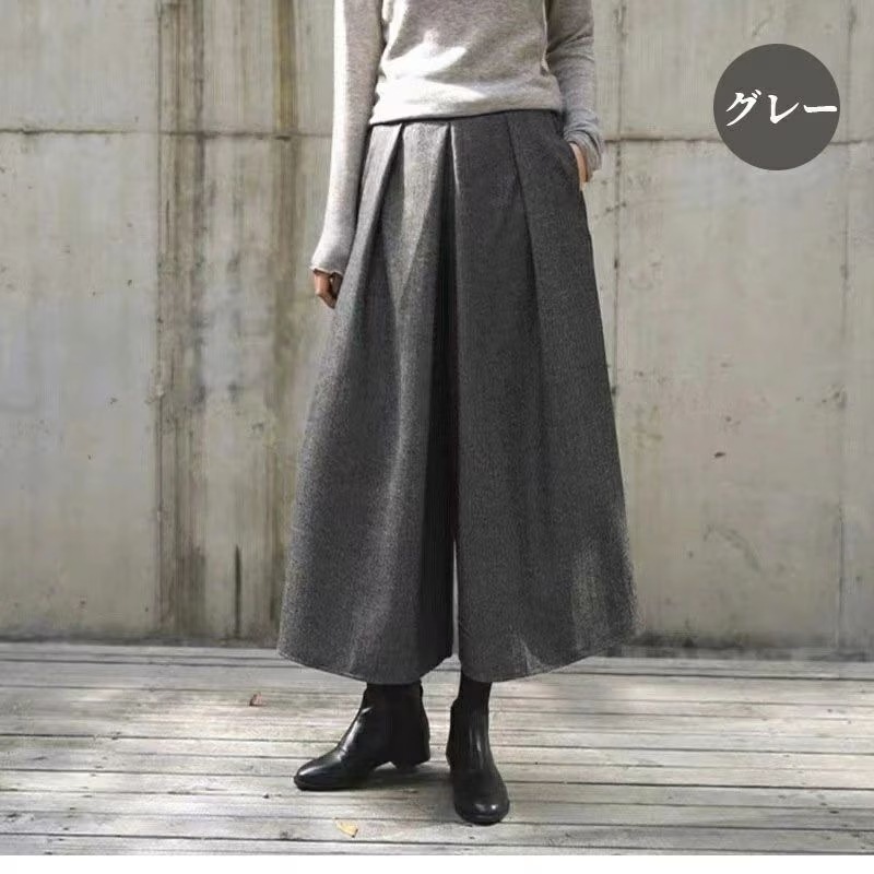 新品 ガウチョパンツ 春服 フレアパンツ スカーチョ 春秋冬 ワイドパンツ レディース キュロットパンツ タック スカンツ ウール 防寒 保温 イージーパンツ 大きいサイズ 韓ファッション